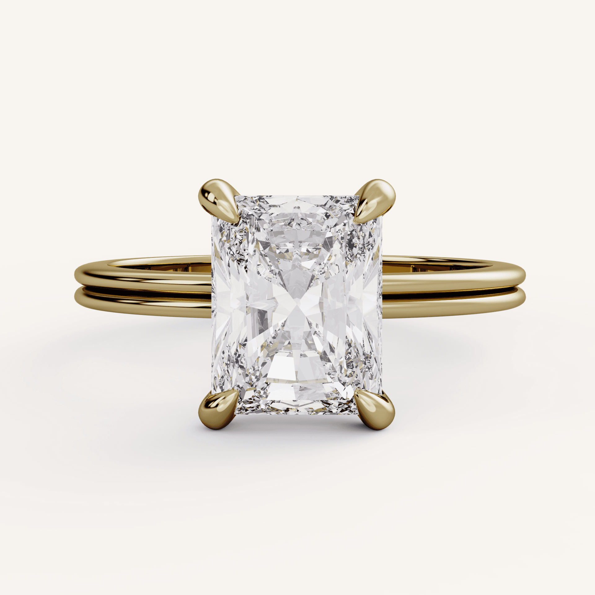 Flush Setting: the head holding the center stone sits very low and flush to the finger.