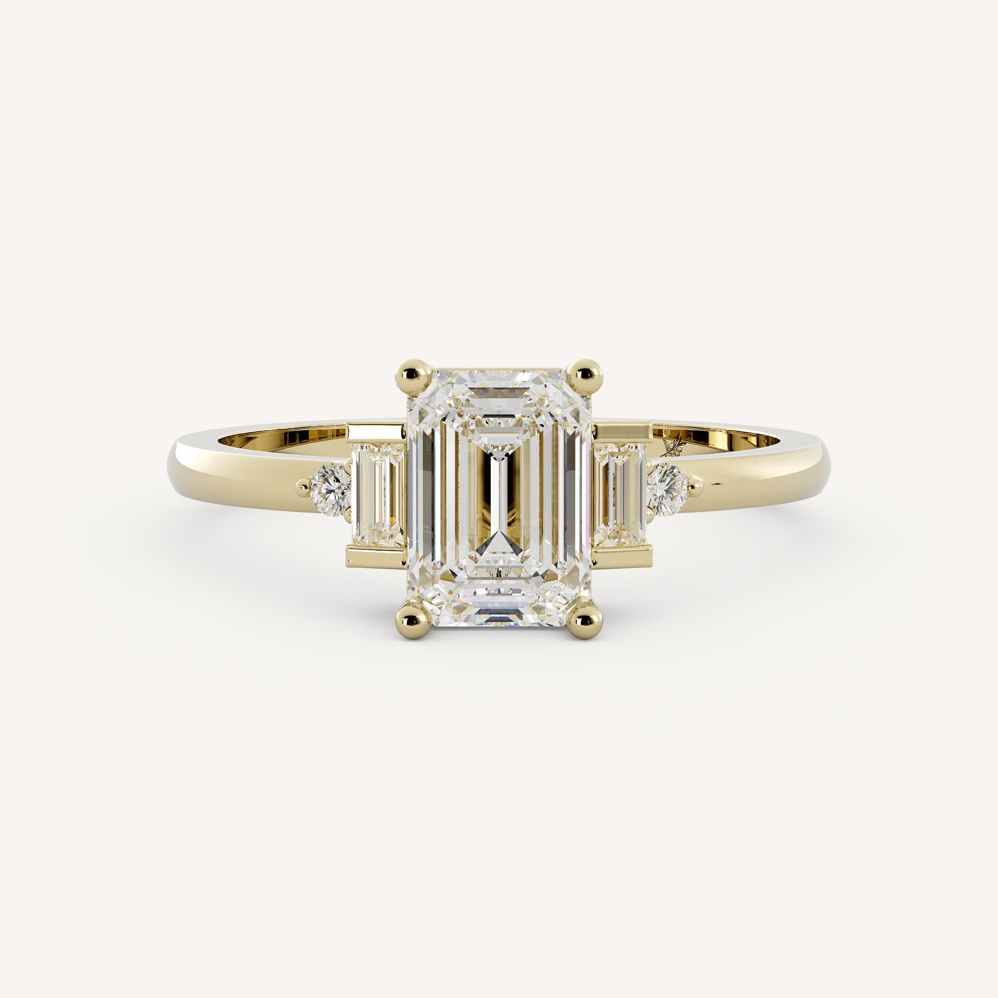 Small diamonds can be used as accents to the radiant or emerald cut center. This showcases the center stone and adds sparkle!