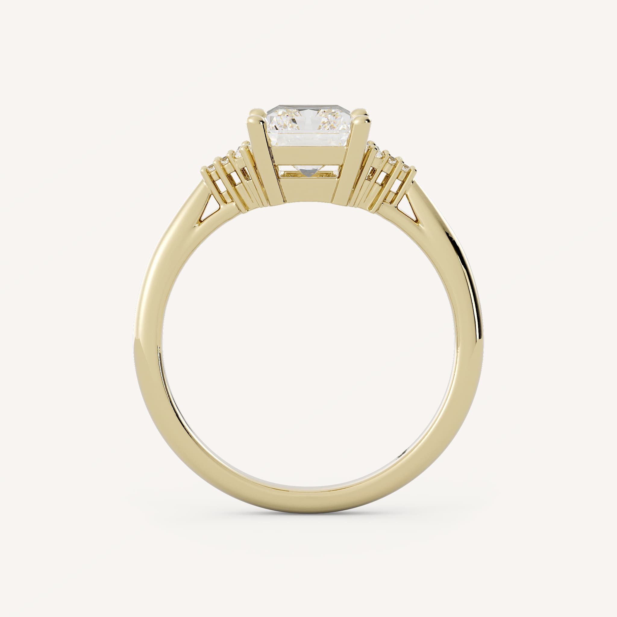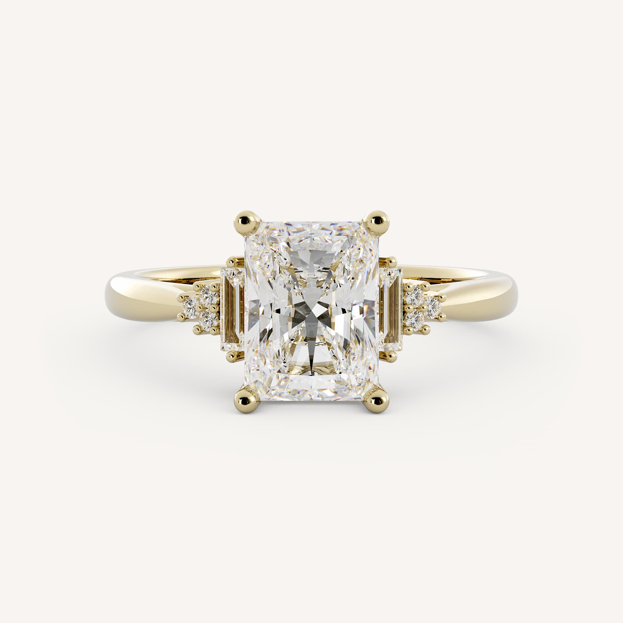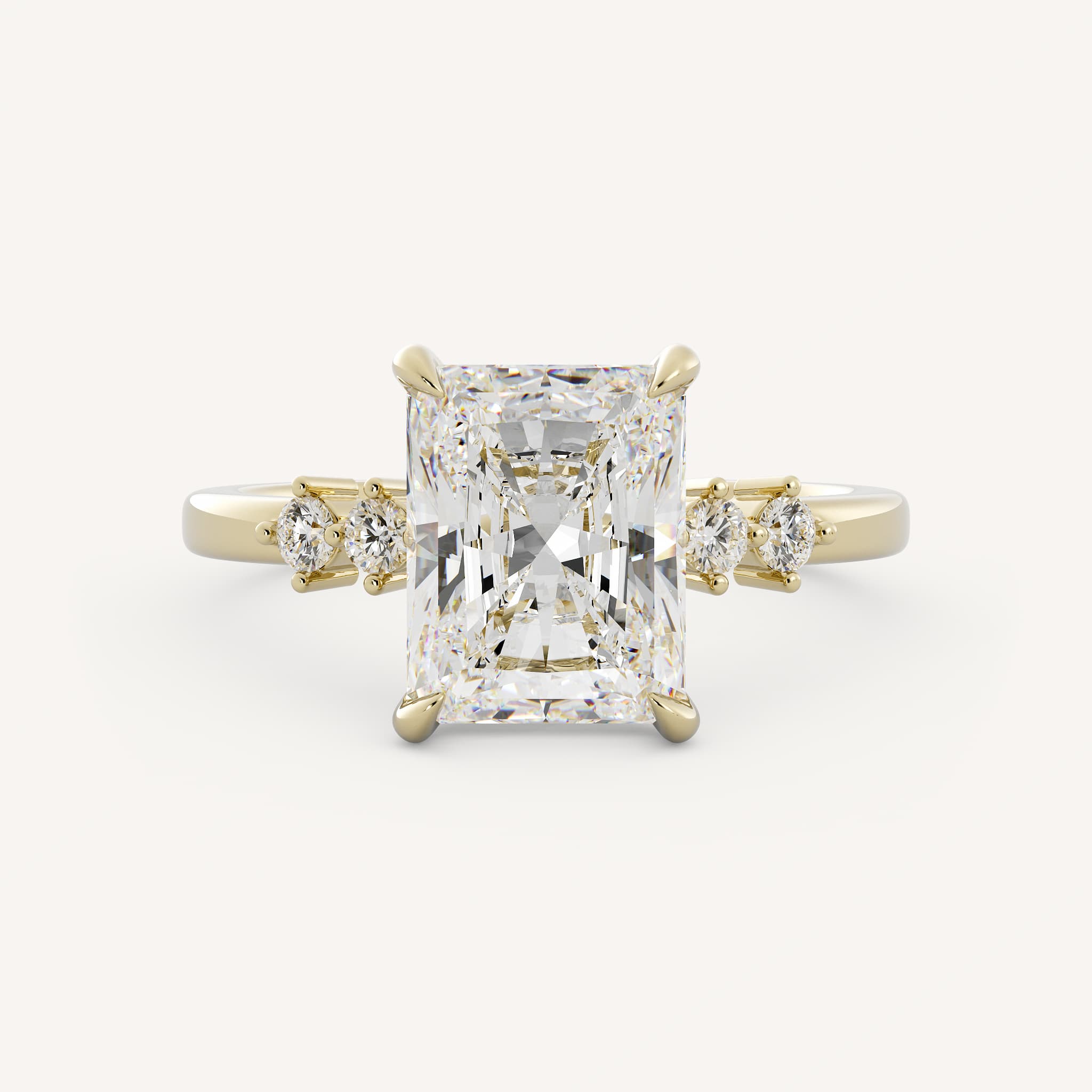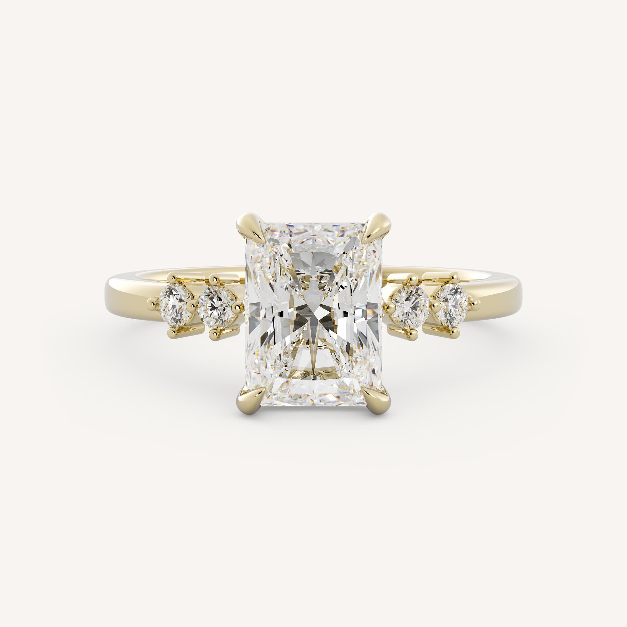 Small diamonds can be used as accents to the radiant or emerald cut center. This showcases the center stone and adds sparkle!