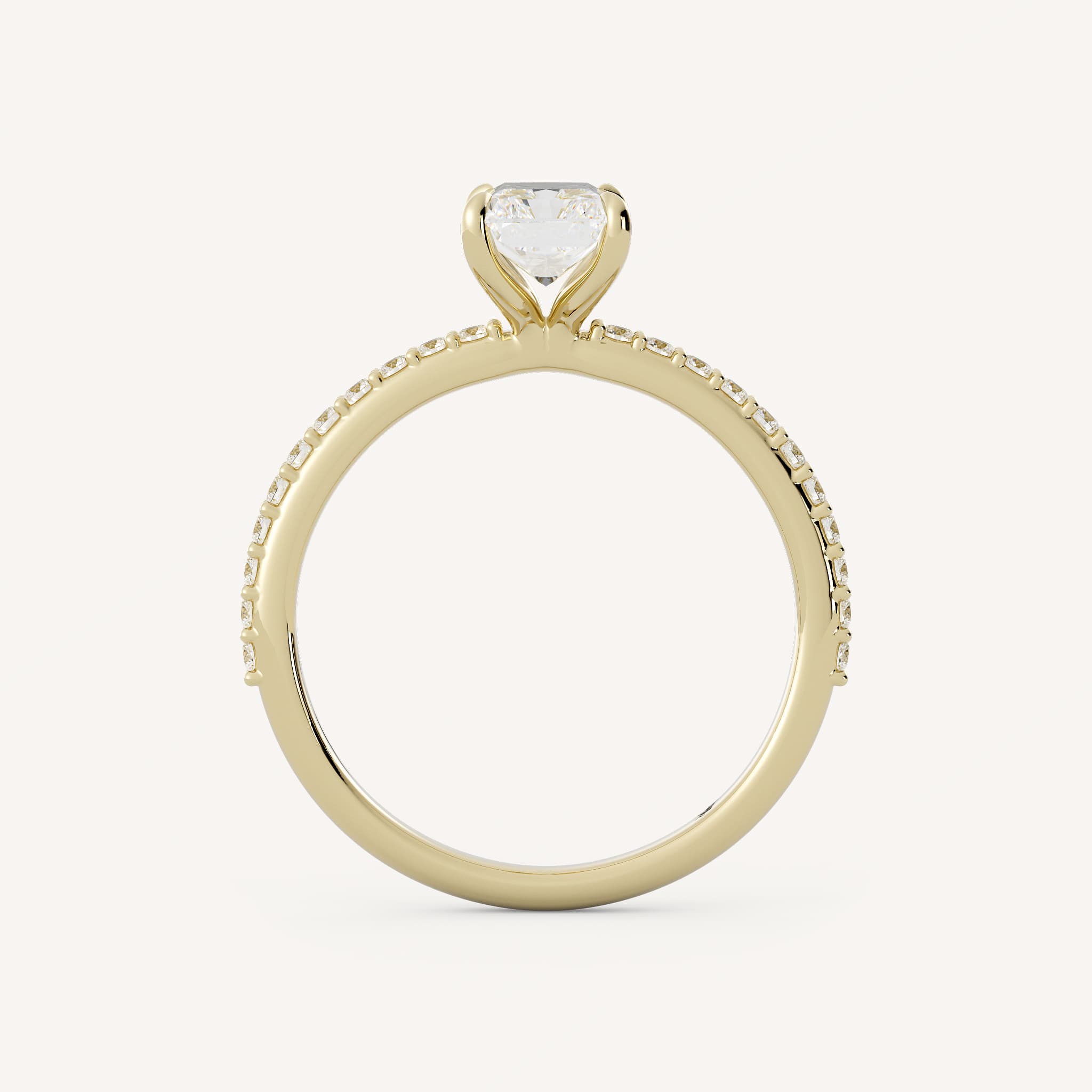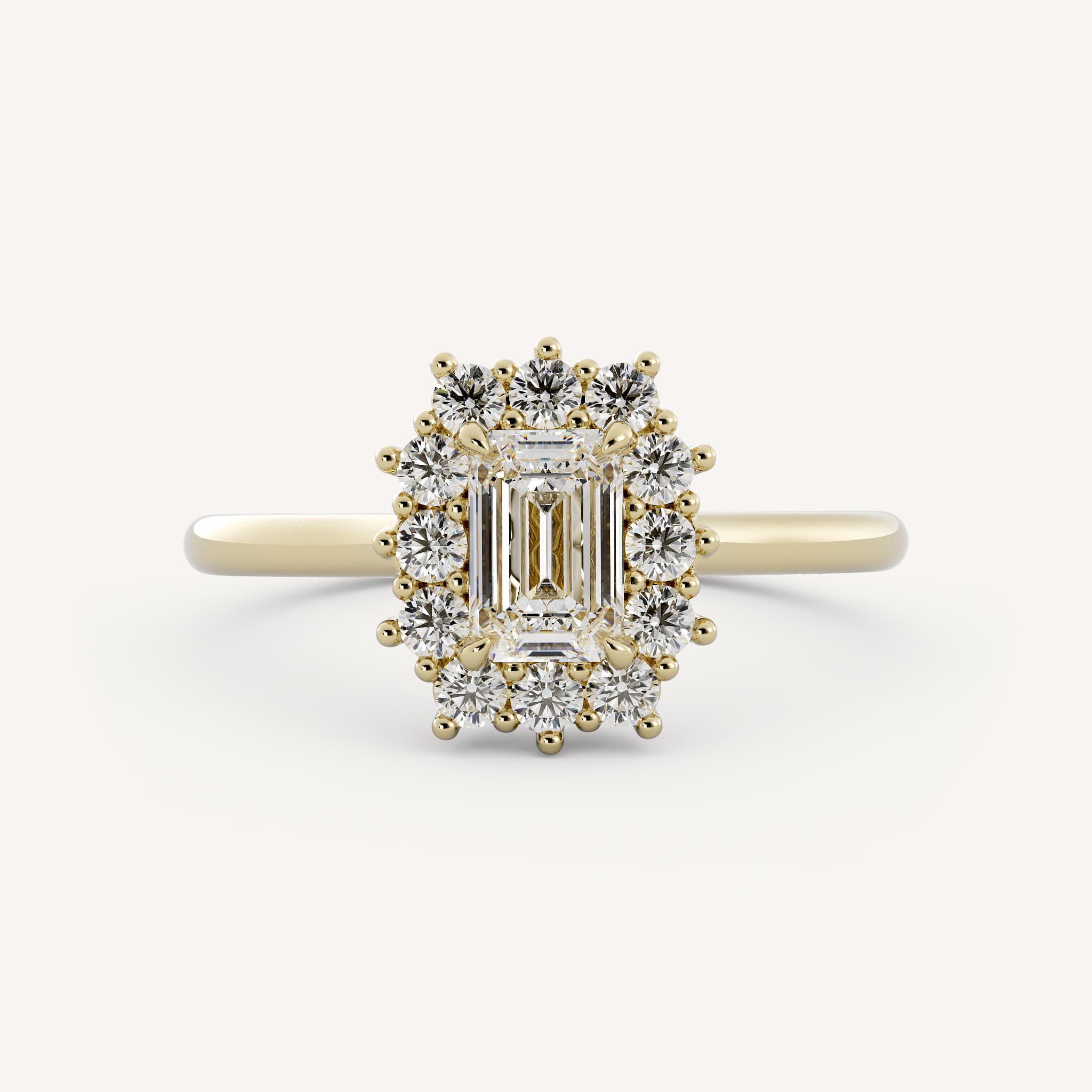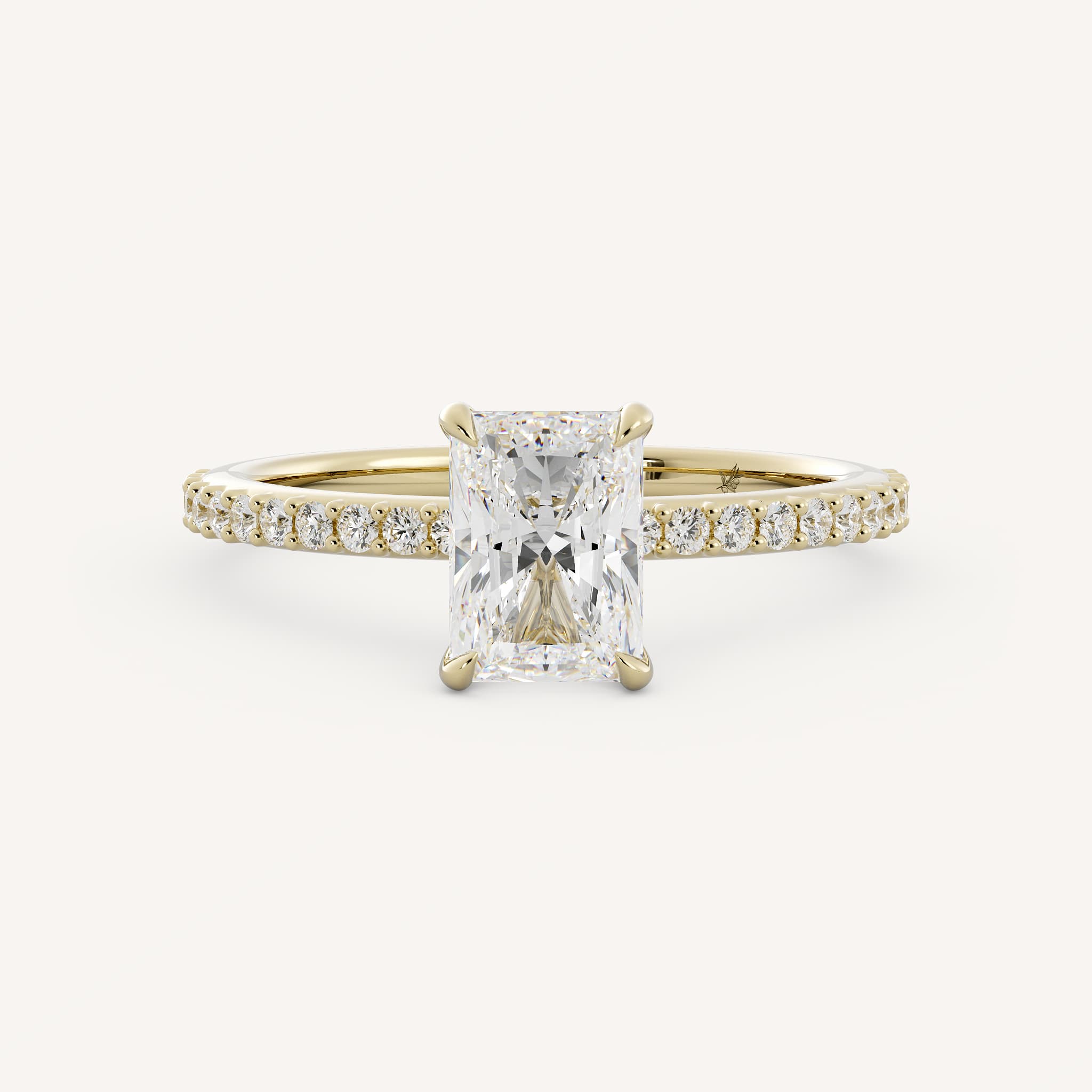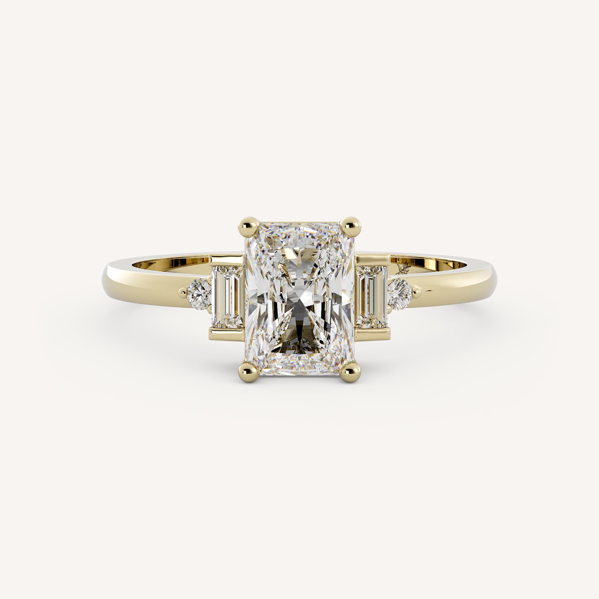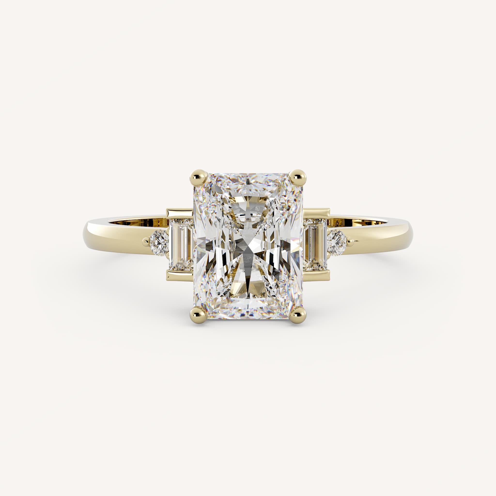 Small diamonds can be used as accents to the radiant or emerald cut center. This showcases the center stone and adds sparkle!
