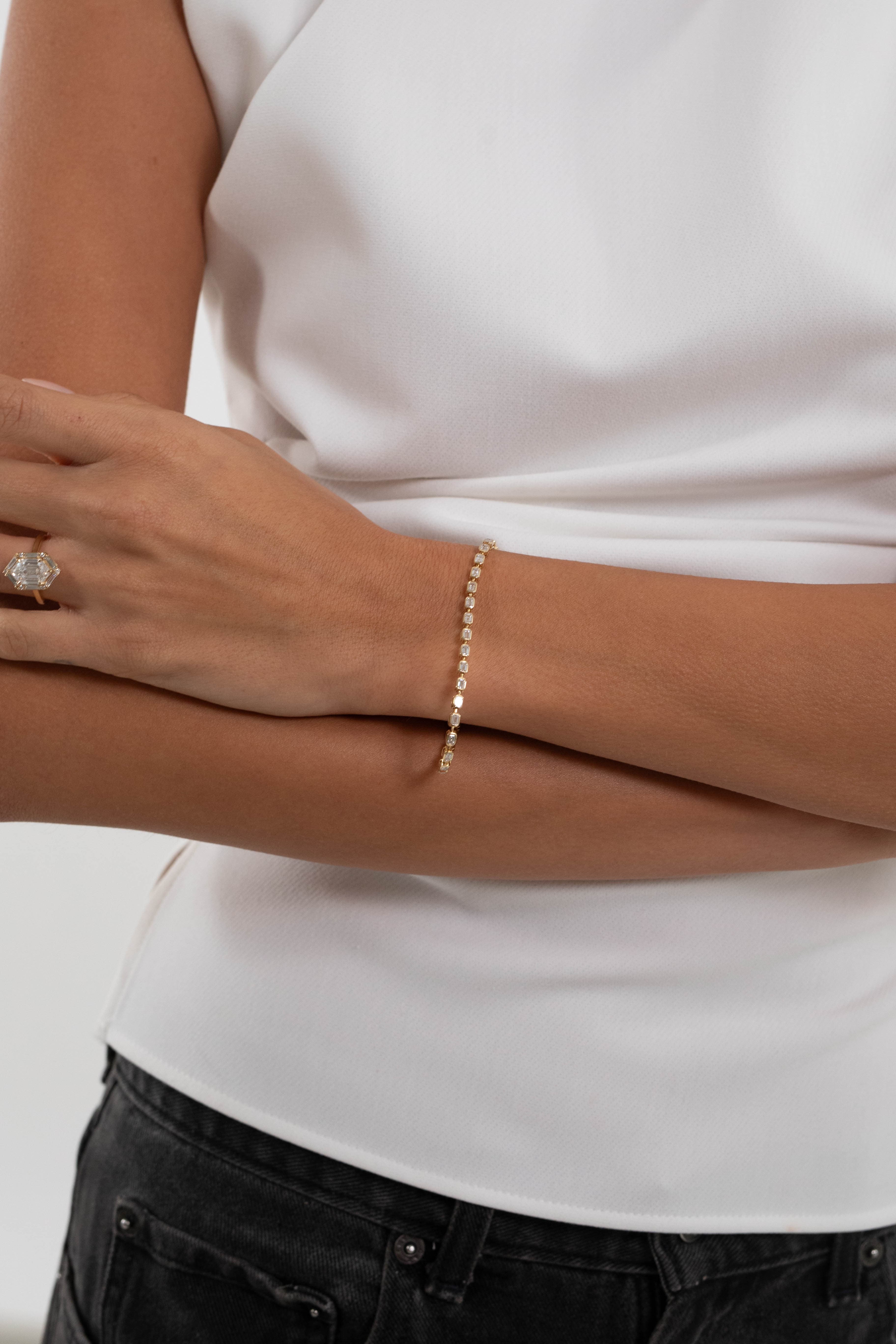 Whether you’re looking for a classic diamond bracelet to wear solo or a minimalist piece to complete your wrist stack, our collection offers versatile options that fit seamlessly into your jewelry rotation. Choose a full-diamond look for maximum shine, or opt for a subtle half-eternity style that layers beautifully with your favorite cuffs and bangles.