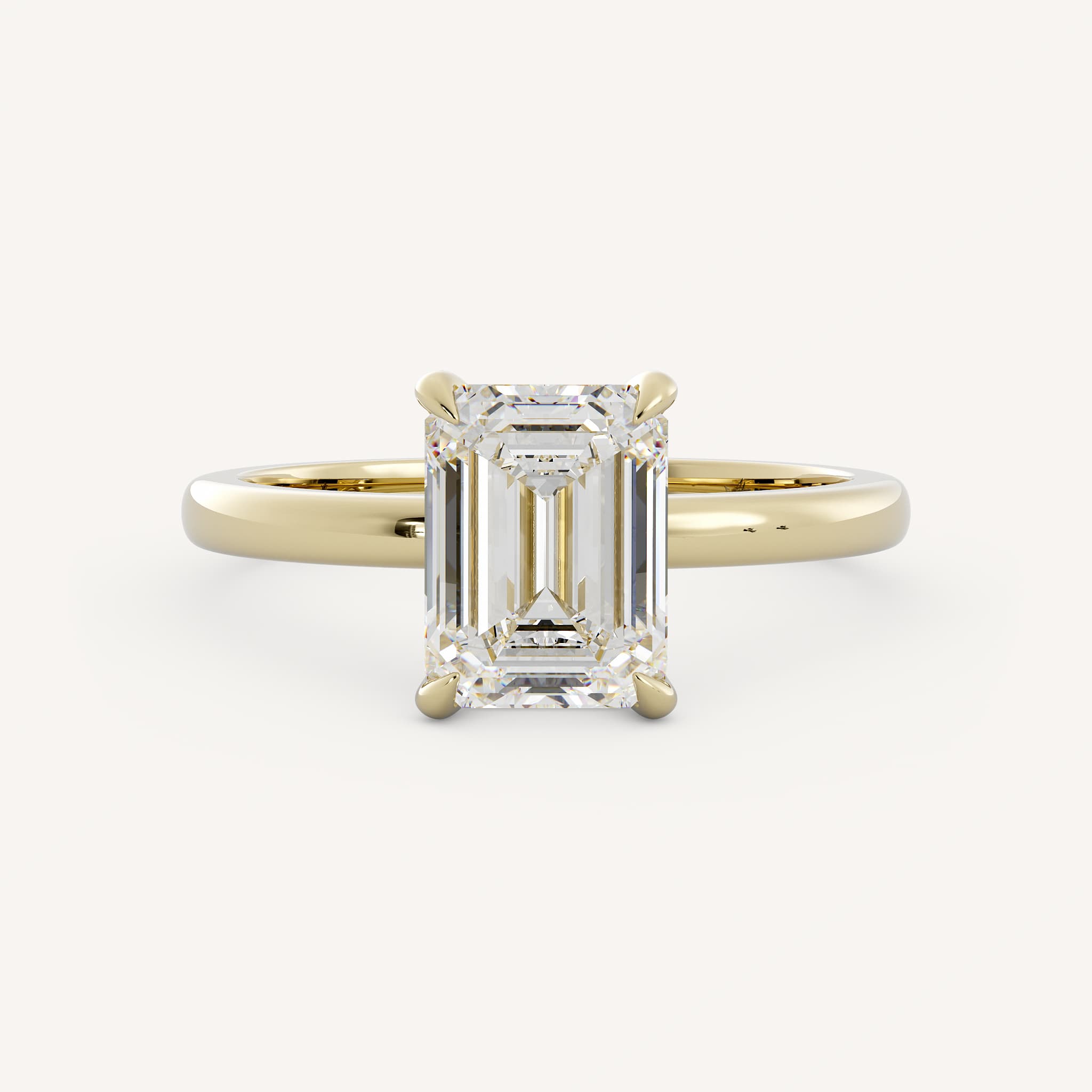 Abigail features a classic emerald shaped center stone set in a traditional solitaire setting on a half round shank.
