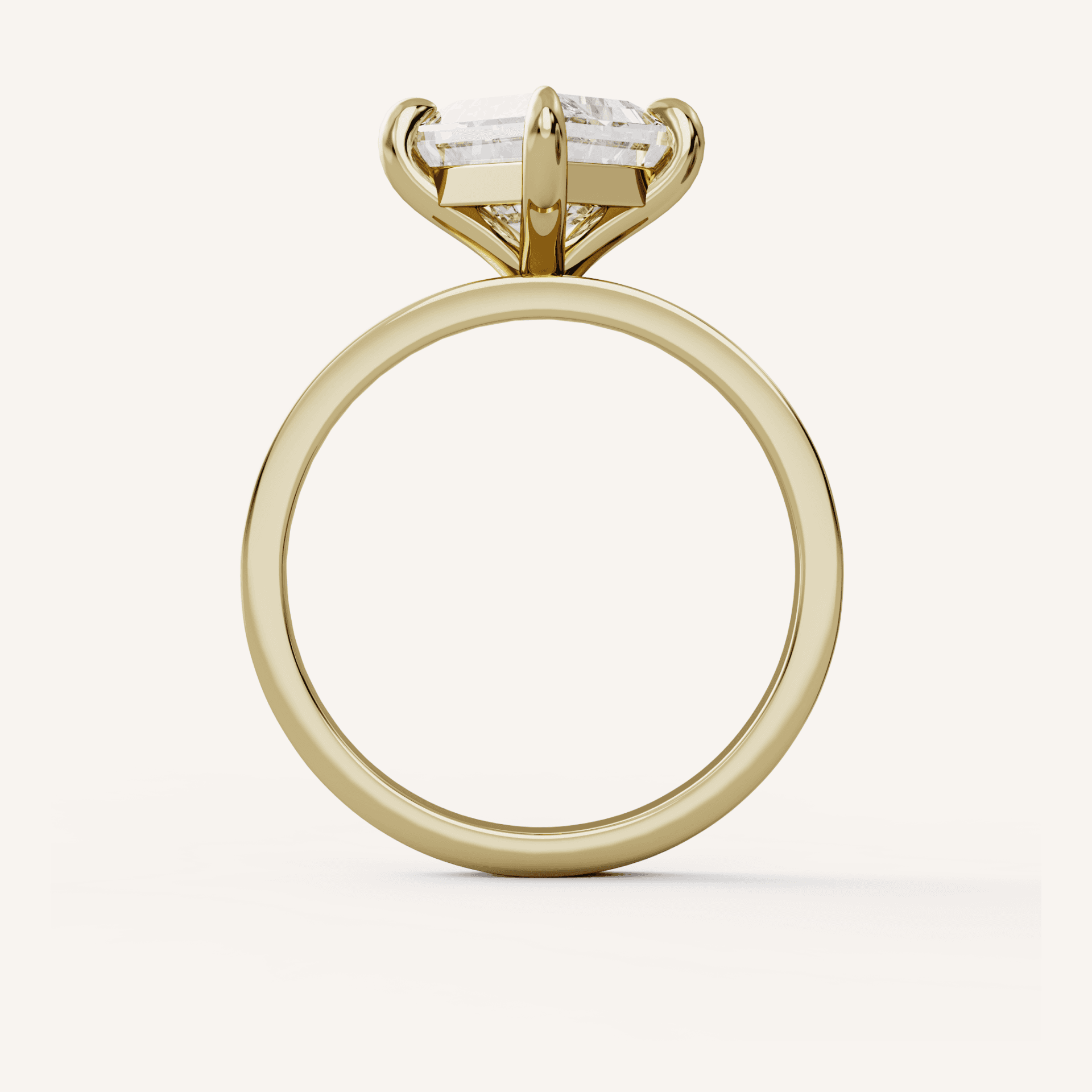 Bex features a lozenge shaped center stone set in a traditional solitaire setting with a thick flat shank.