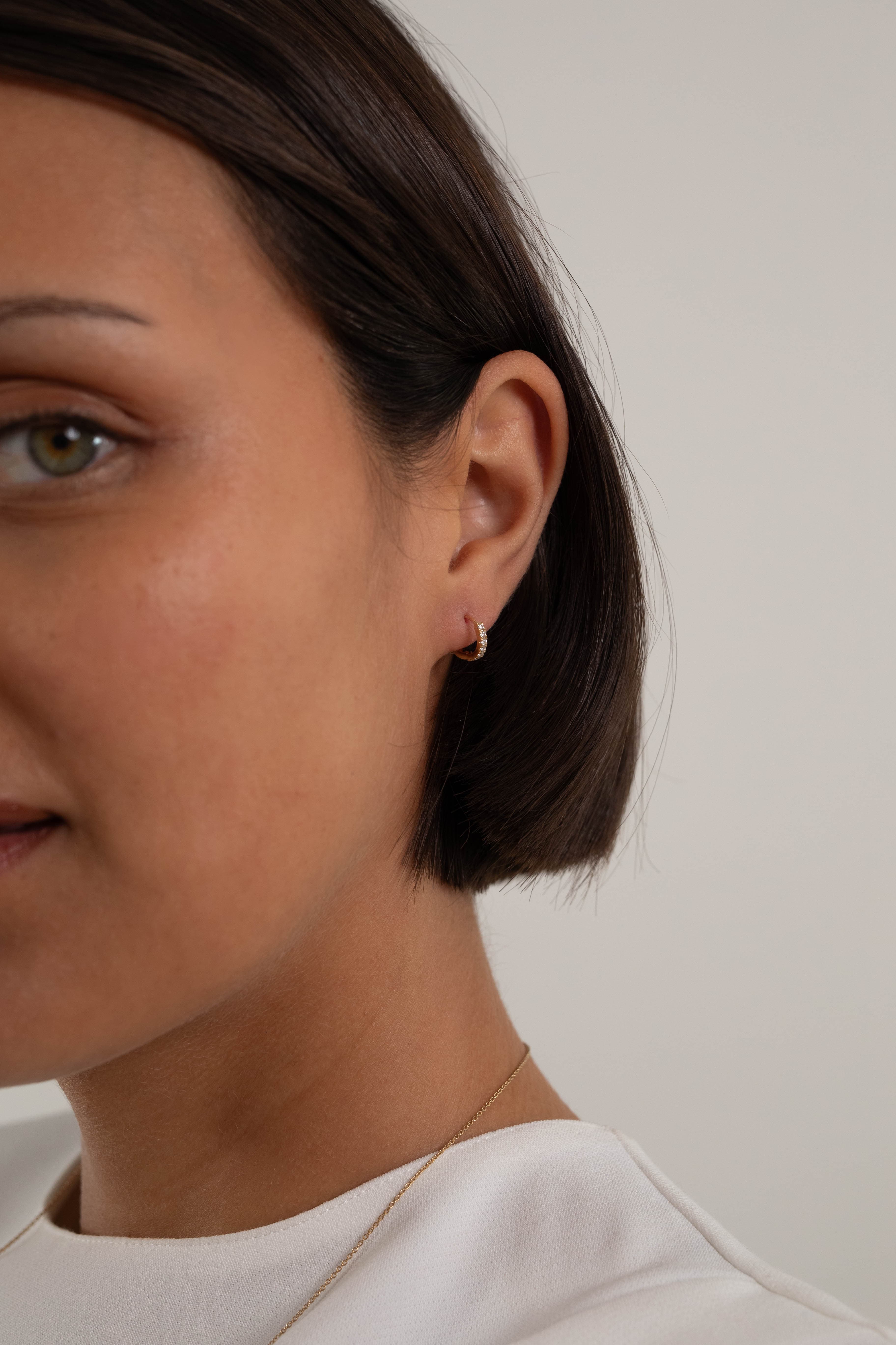Diamond Hoops are a pair of hinged hoop earrings featuring round lab grown diamonds. Offered in two sizes, 10mm & 12mm.