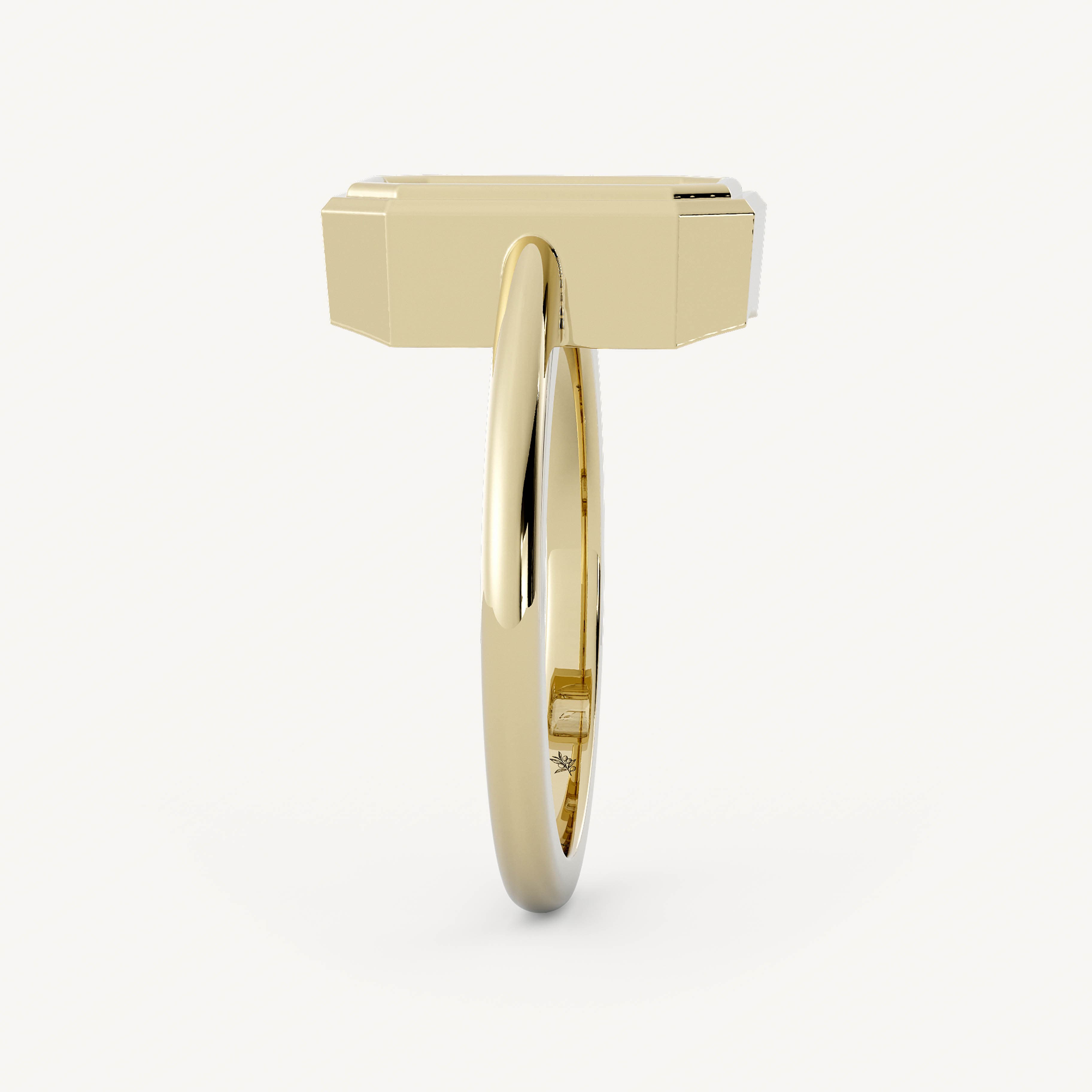 Dover features an emerald shaped center stone in a bold bezel setting on a half round shank.