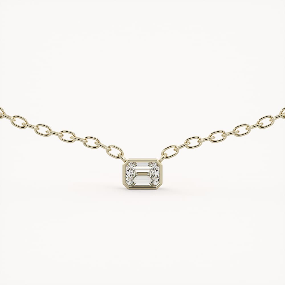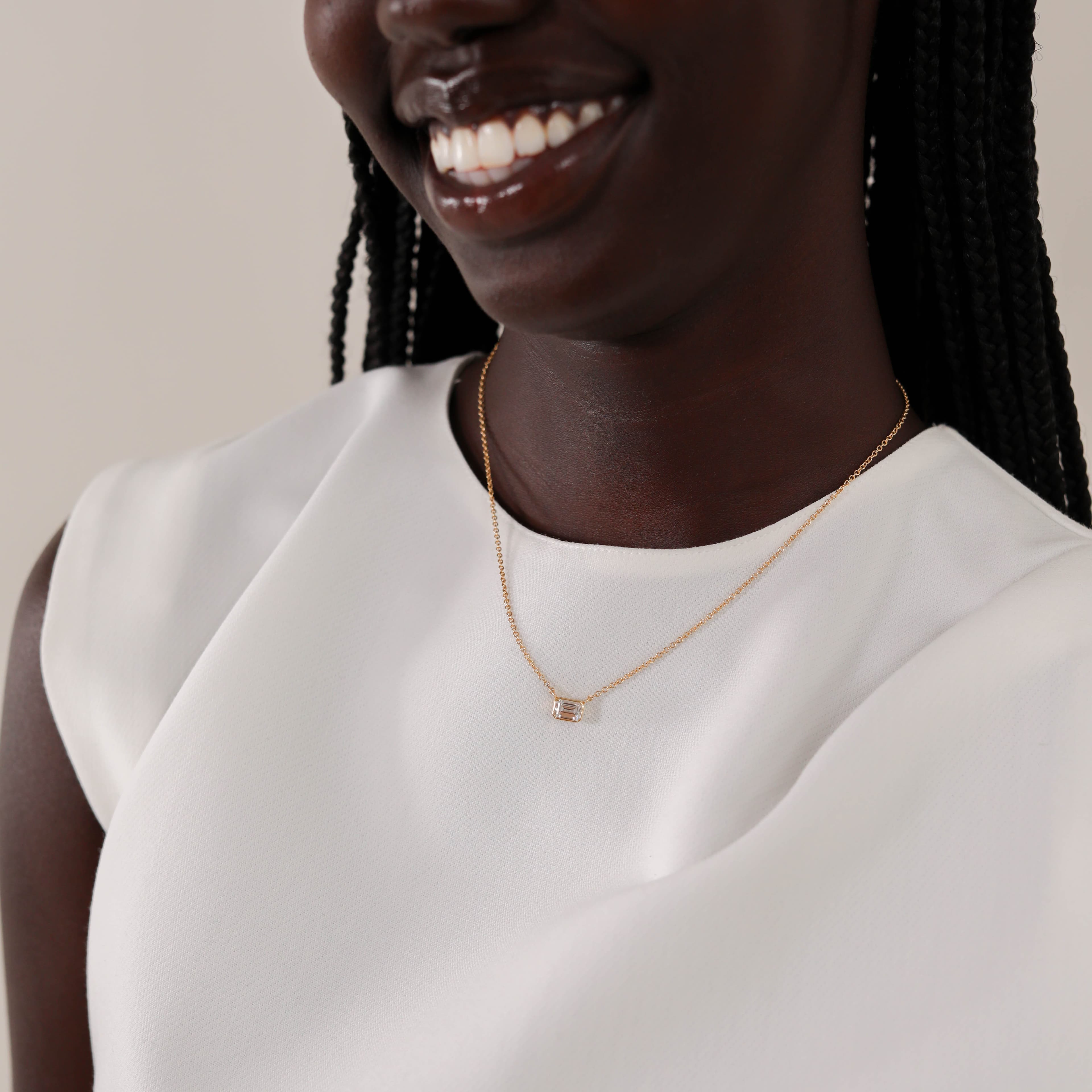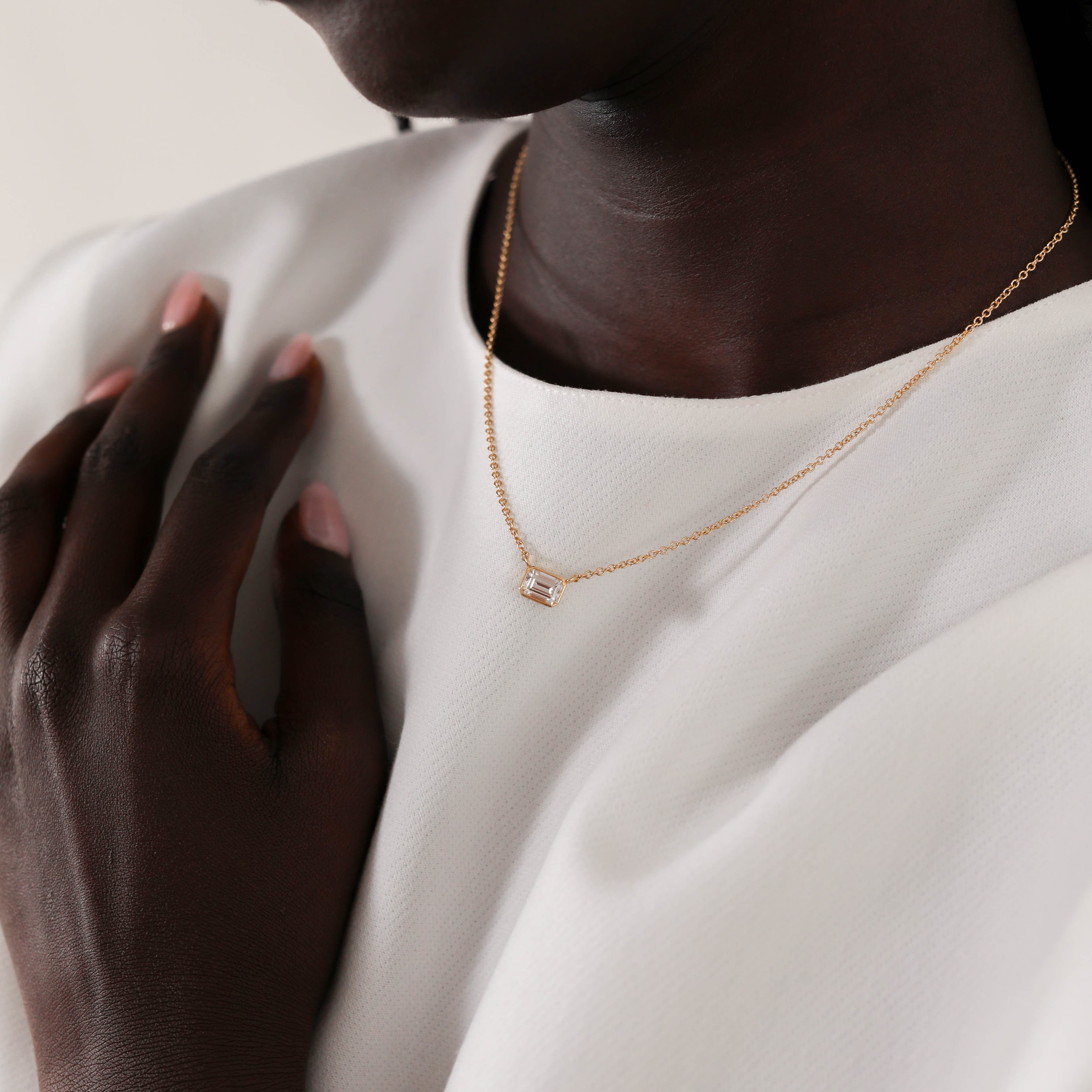 Made to stack or shine alone, the East West Bezel Necklace features a lovely bezel pendant set east west on a 16 inch 14K gold cable chain finished with a lobster clasp.