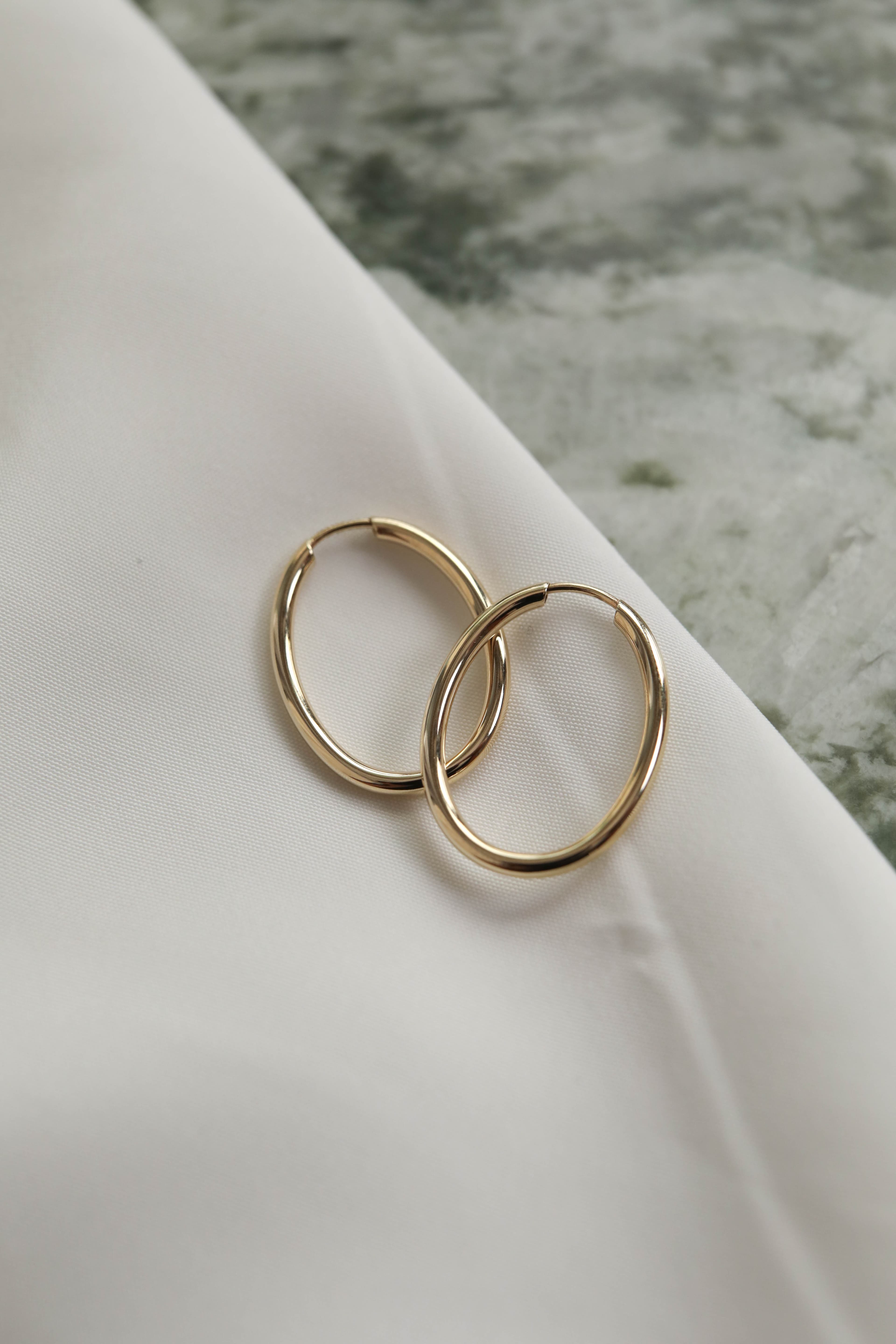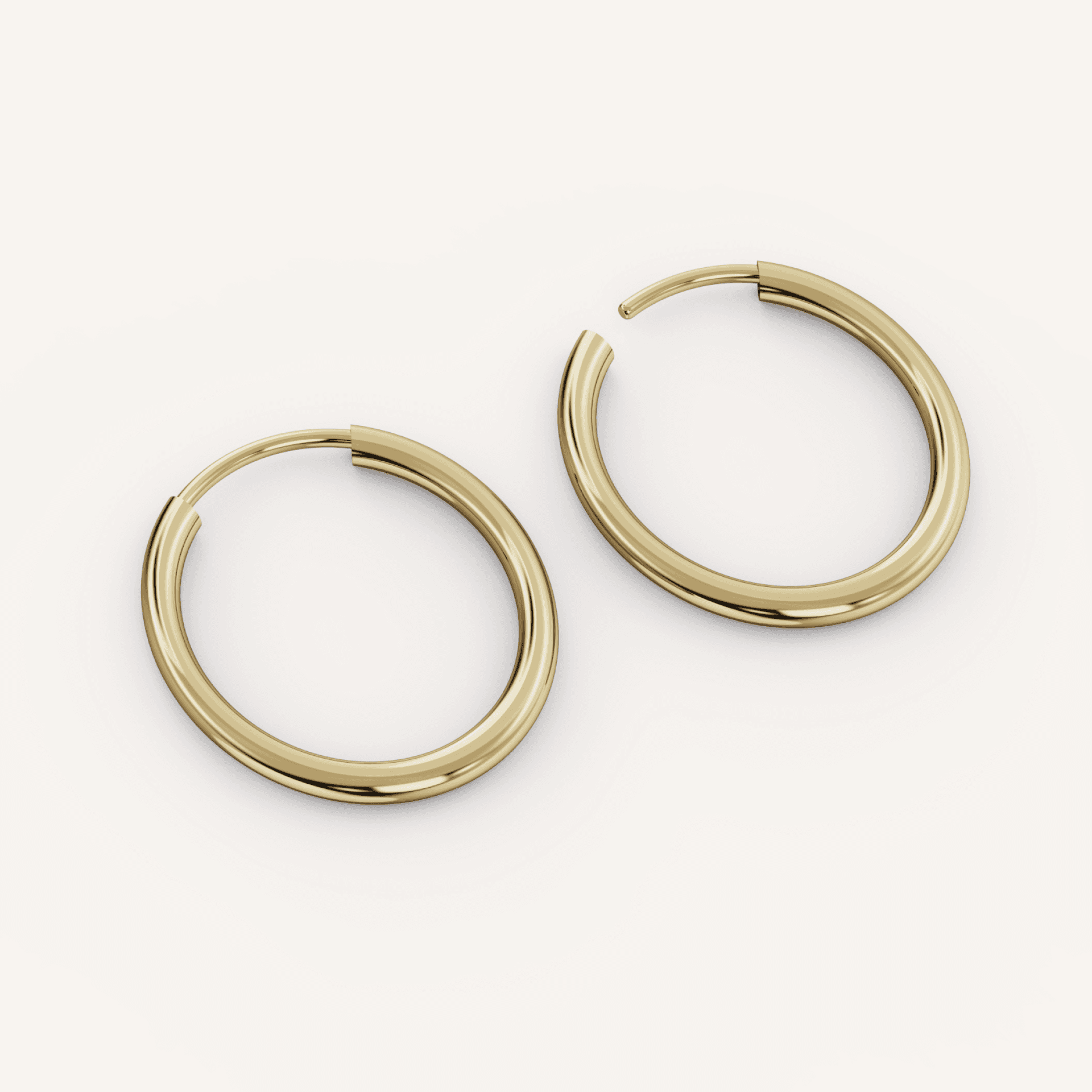 14K Yellow Gold polished oval hoop earrings with endless style closure