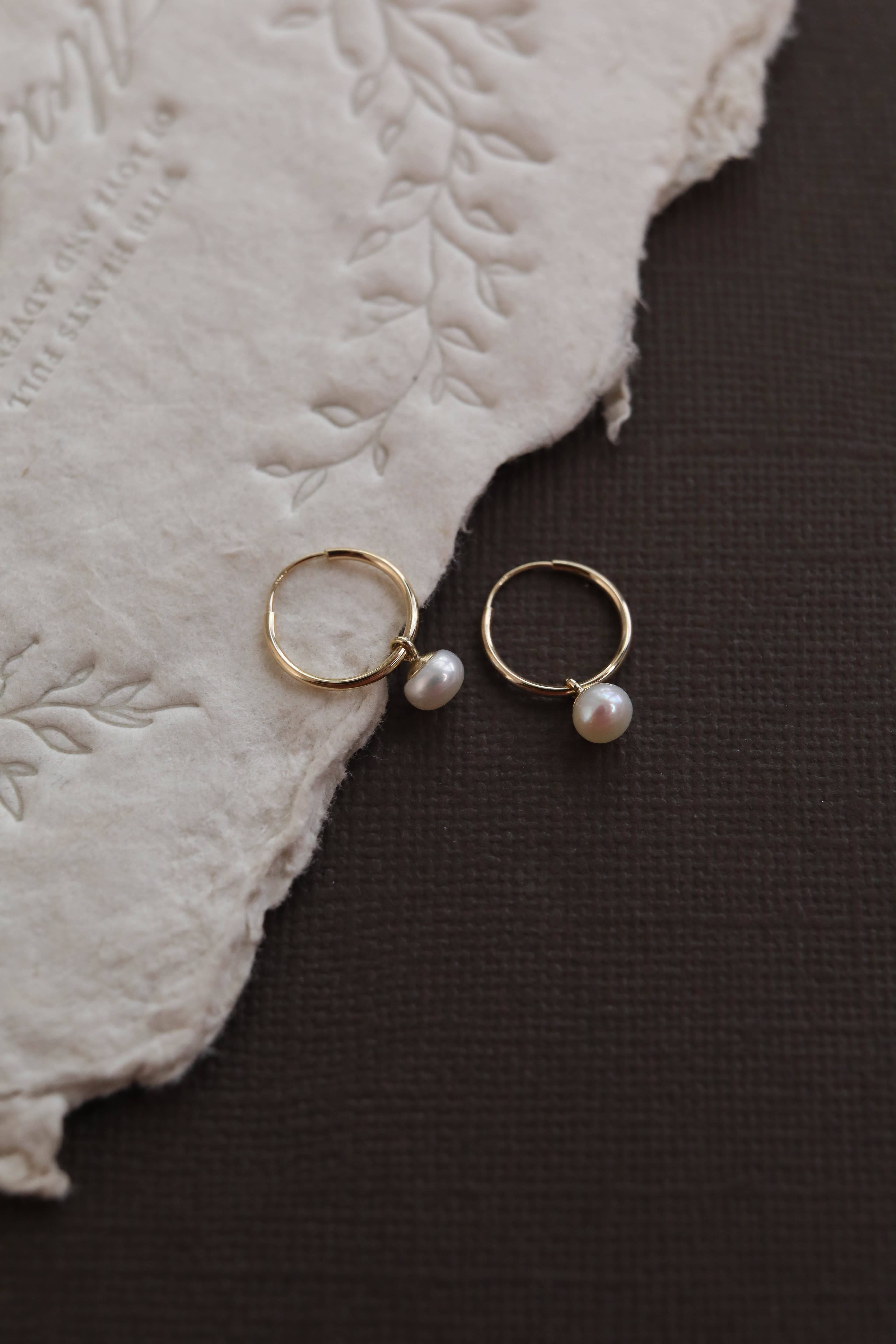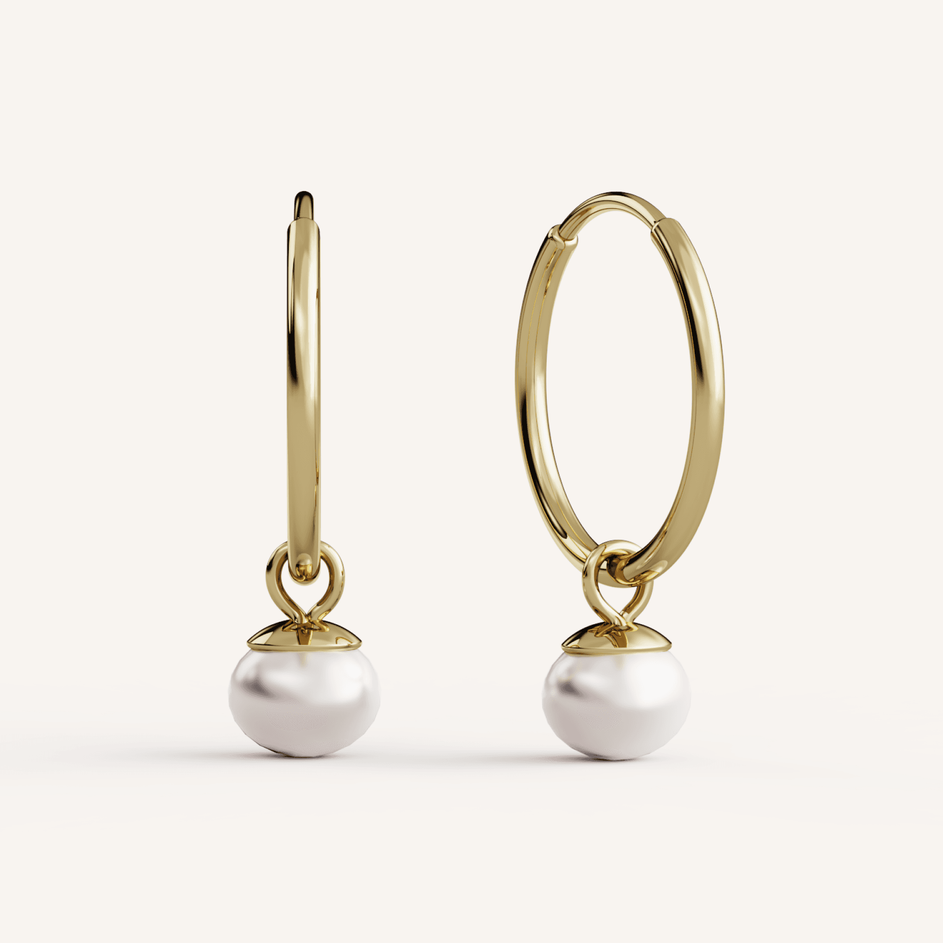 14K Yellow Gold Hoop Earrings with Pearl Drops
