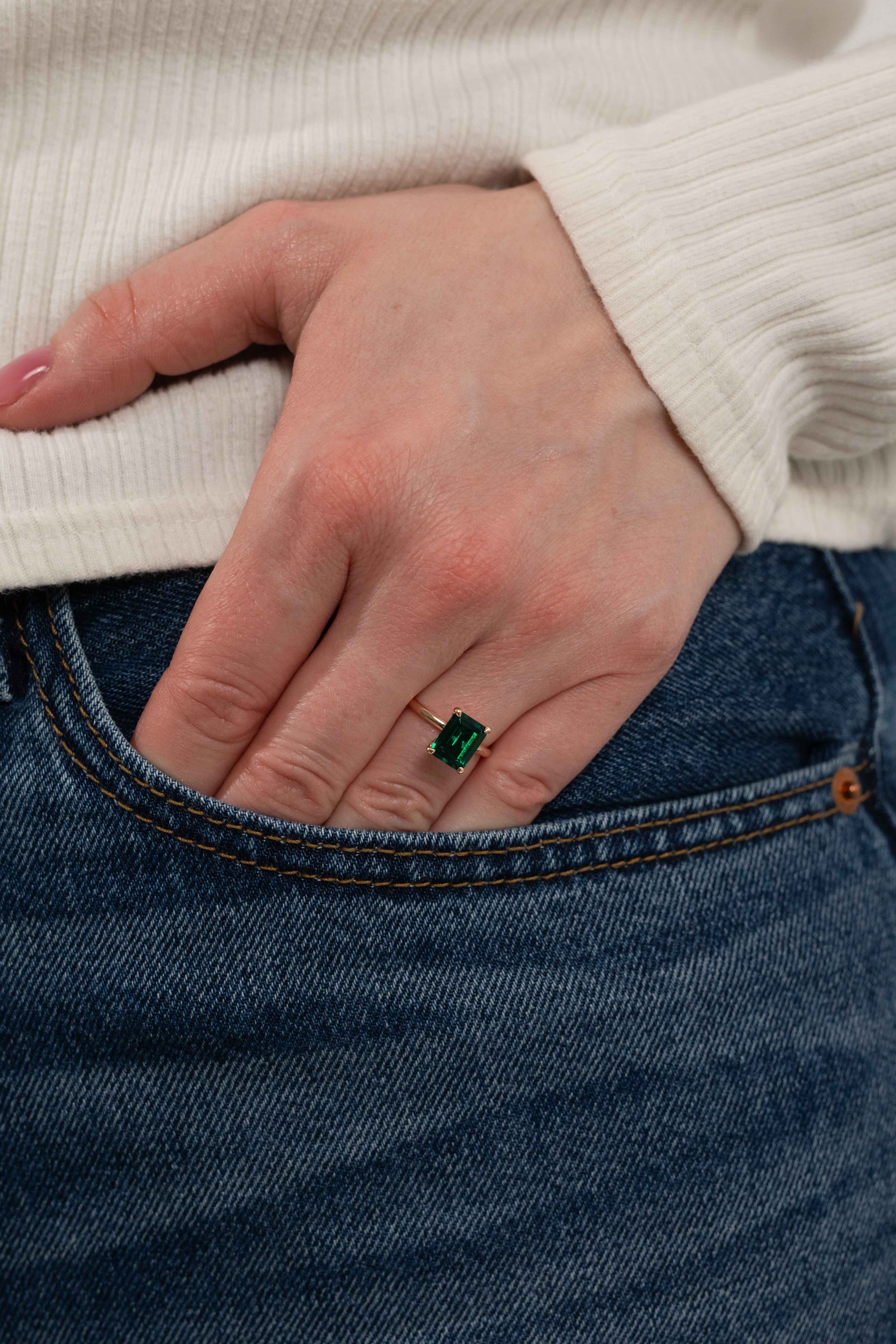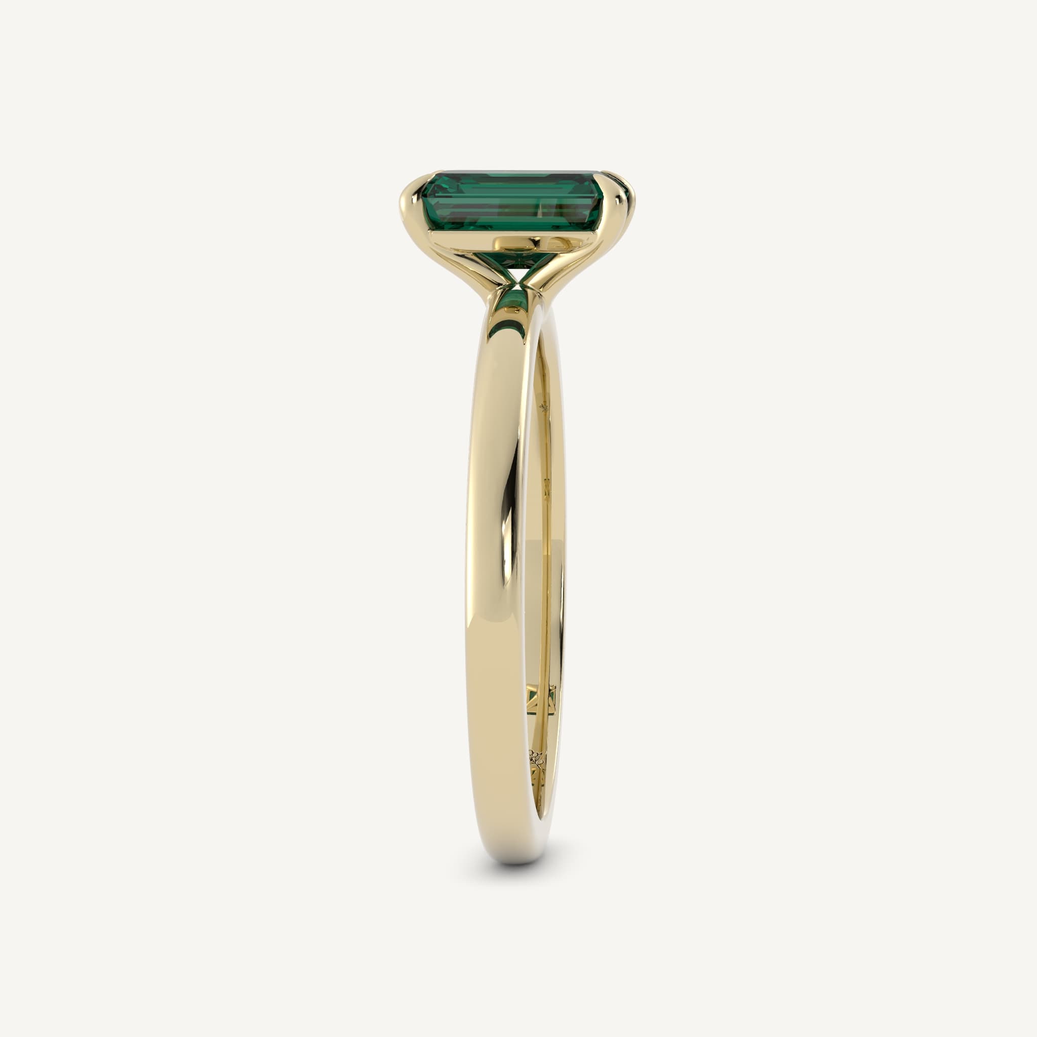 Fielder features a bold emerald Lab-grown Zambian Emerald set traditionally on a half round shank.