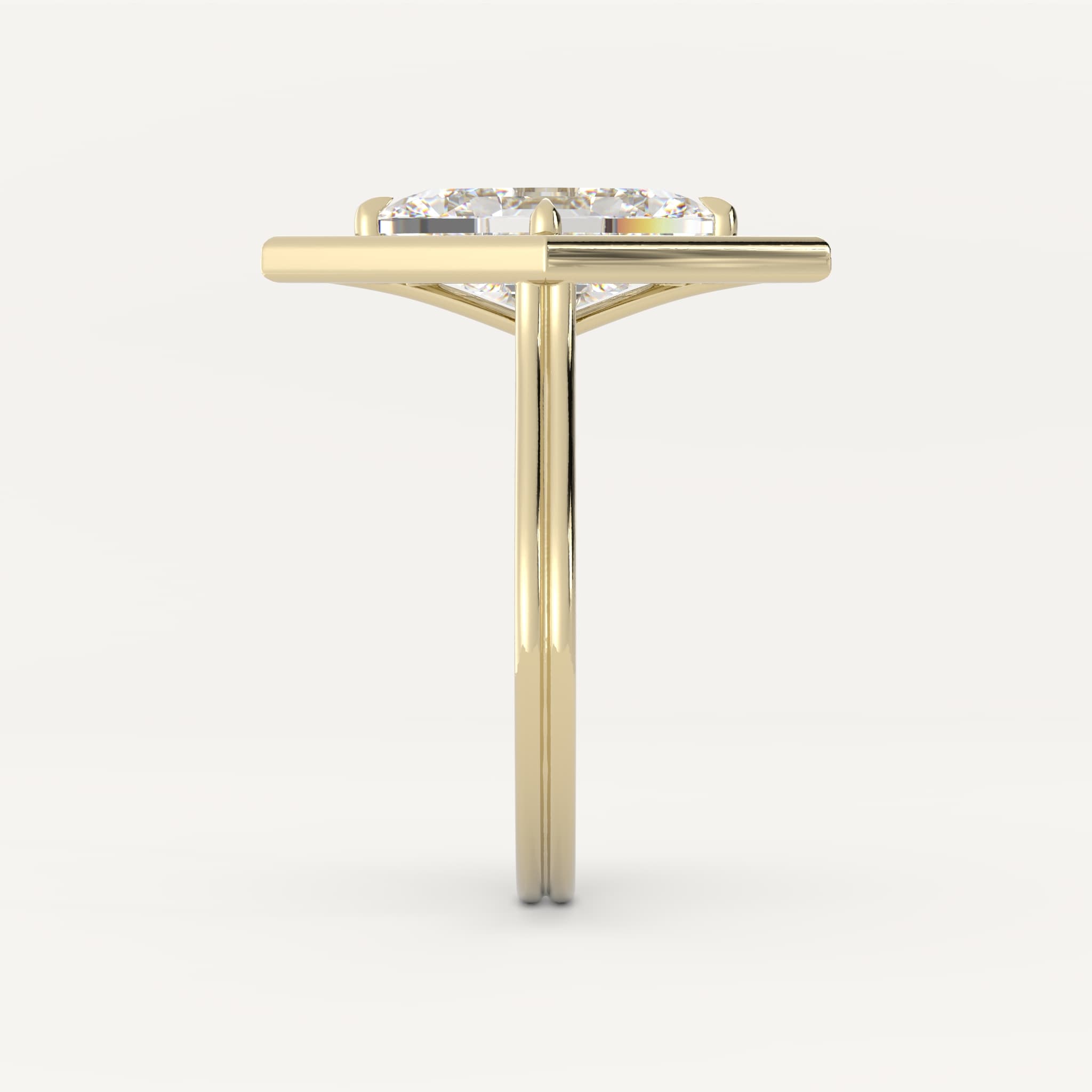 Franklin features a striking lozenge center stone with a gold grooved halo and shank with a cathedral setting.