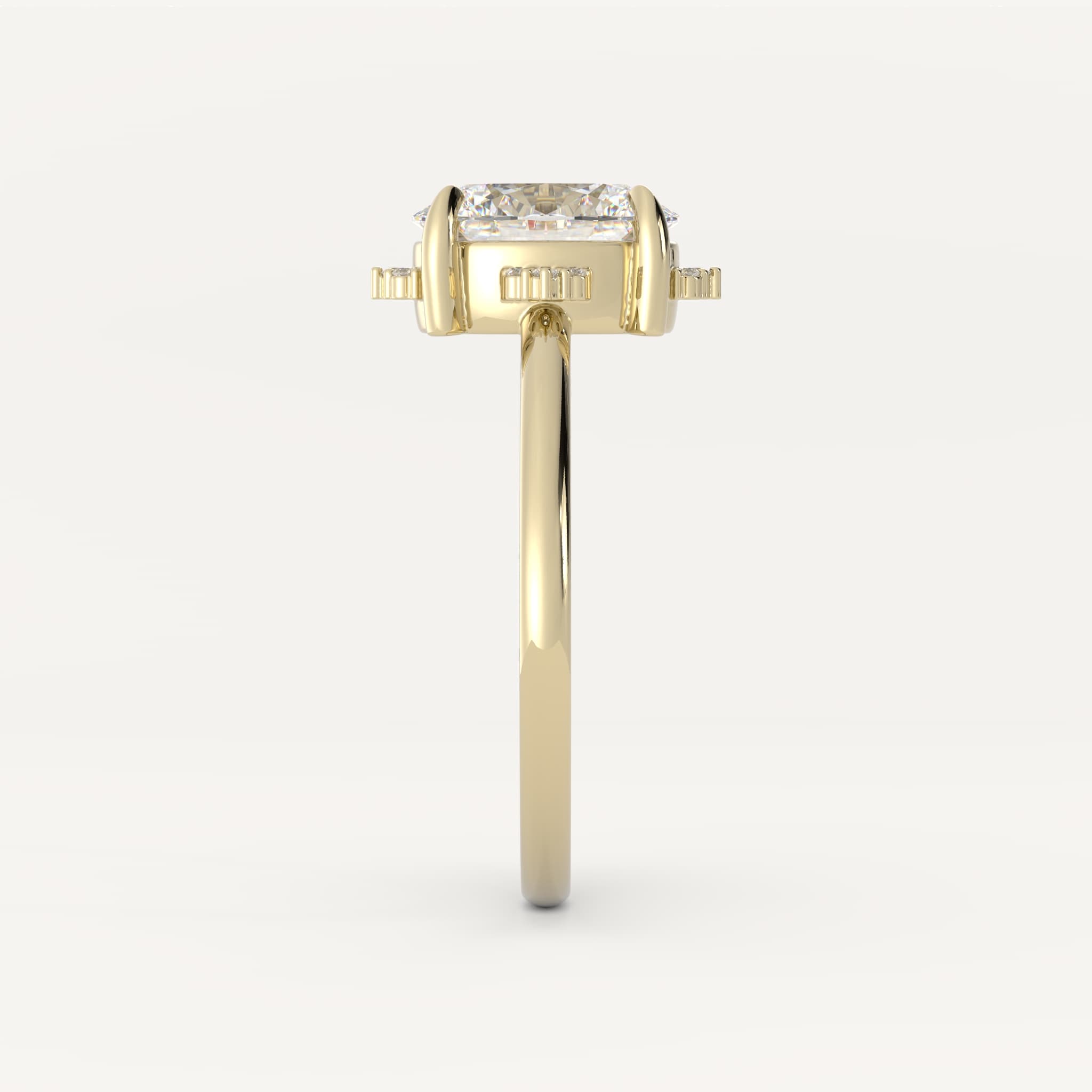 Gemma features an Oval shaped center stone set with claw prongs and clusters of three round accent stones on a half round shank.