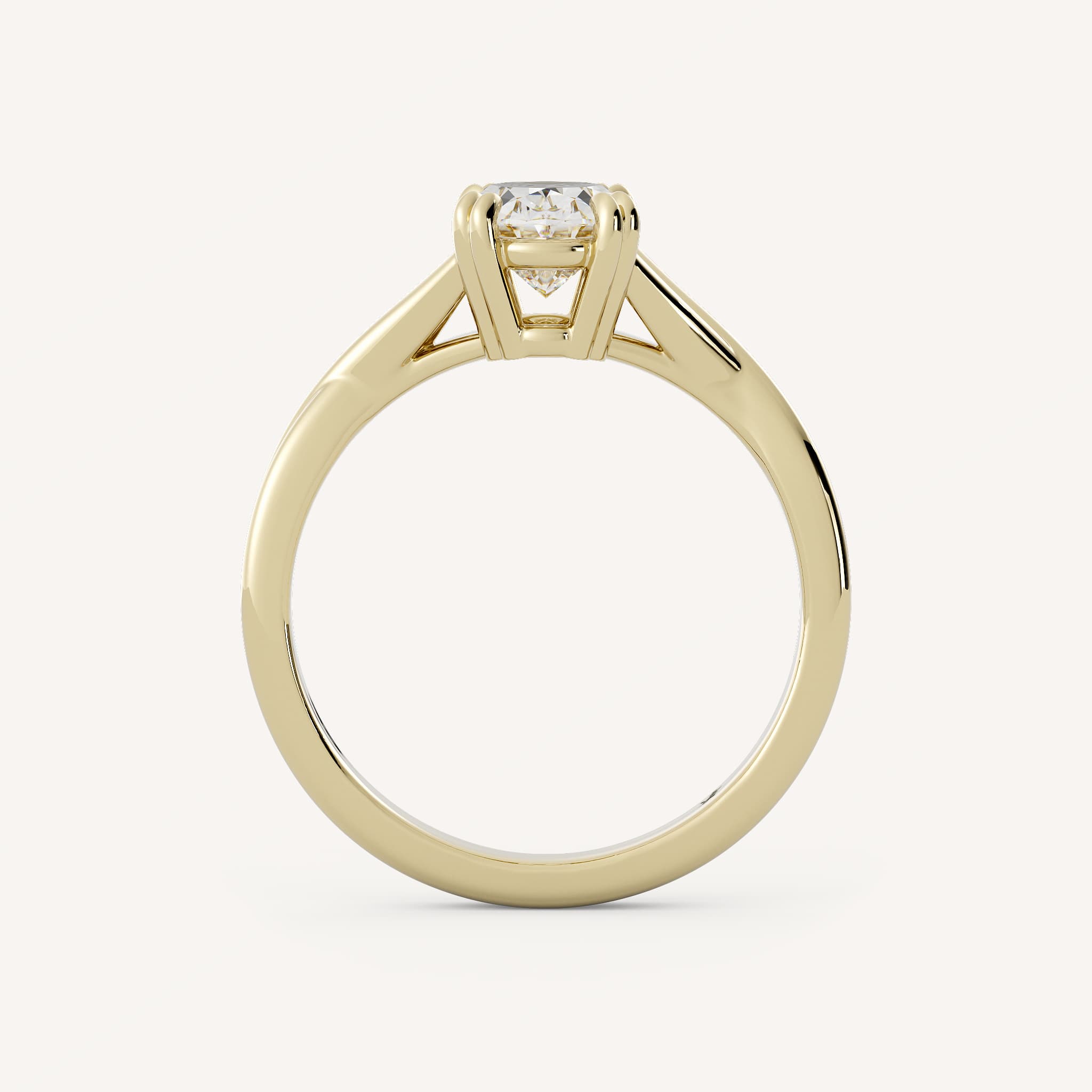 Jensen features a bold oval center stone with double claw prongs set in a basket setting on a twisted shank.