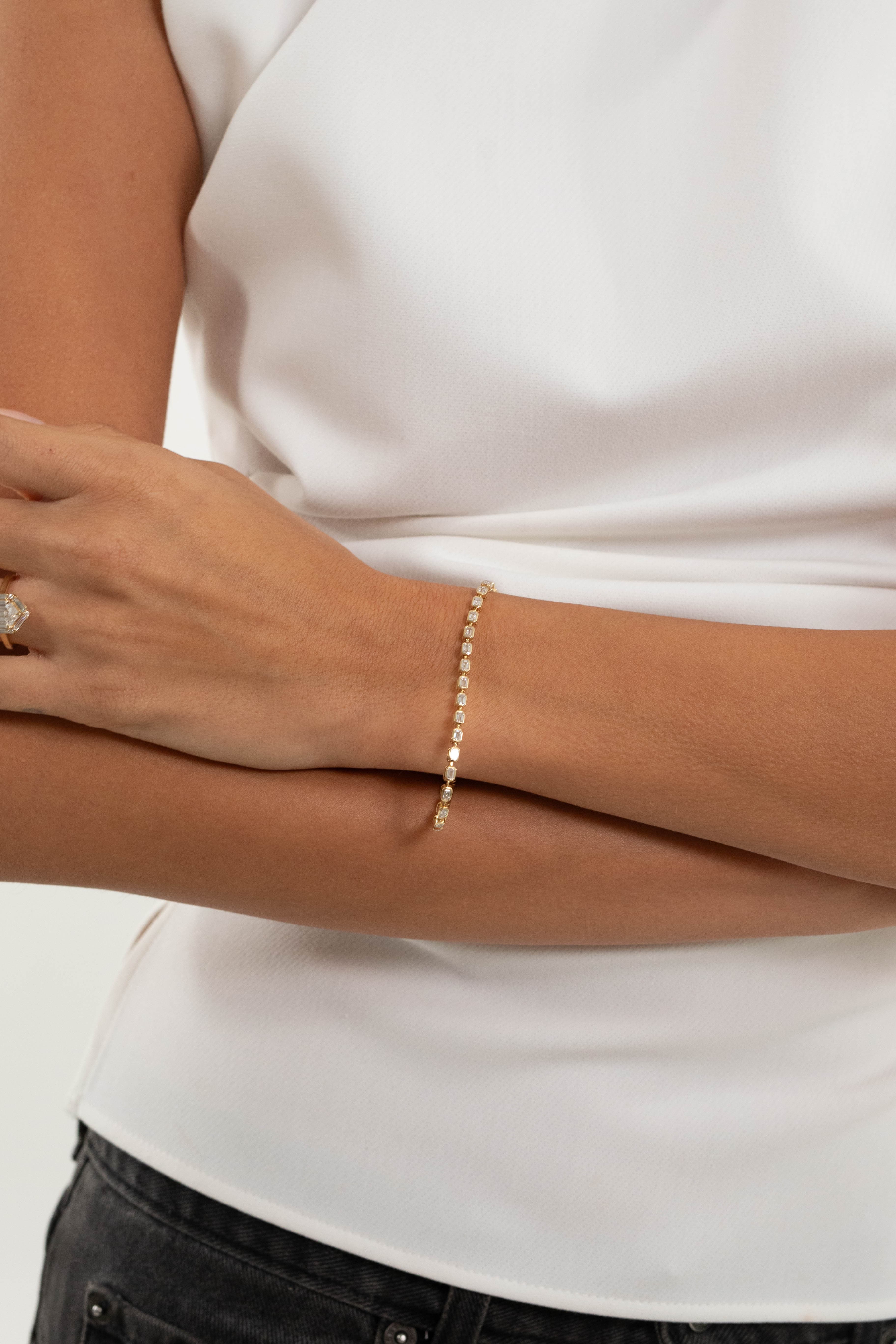 3.8 CTW East-West emerald bezel set lab diamond tennis bracelet