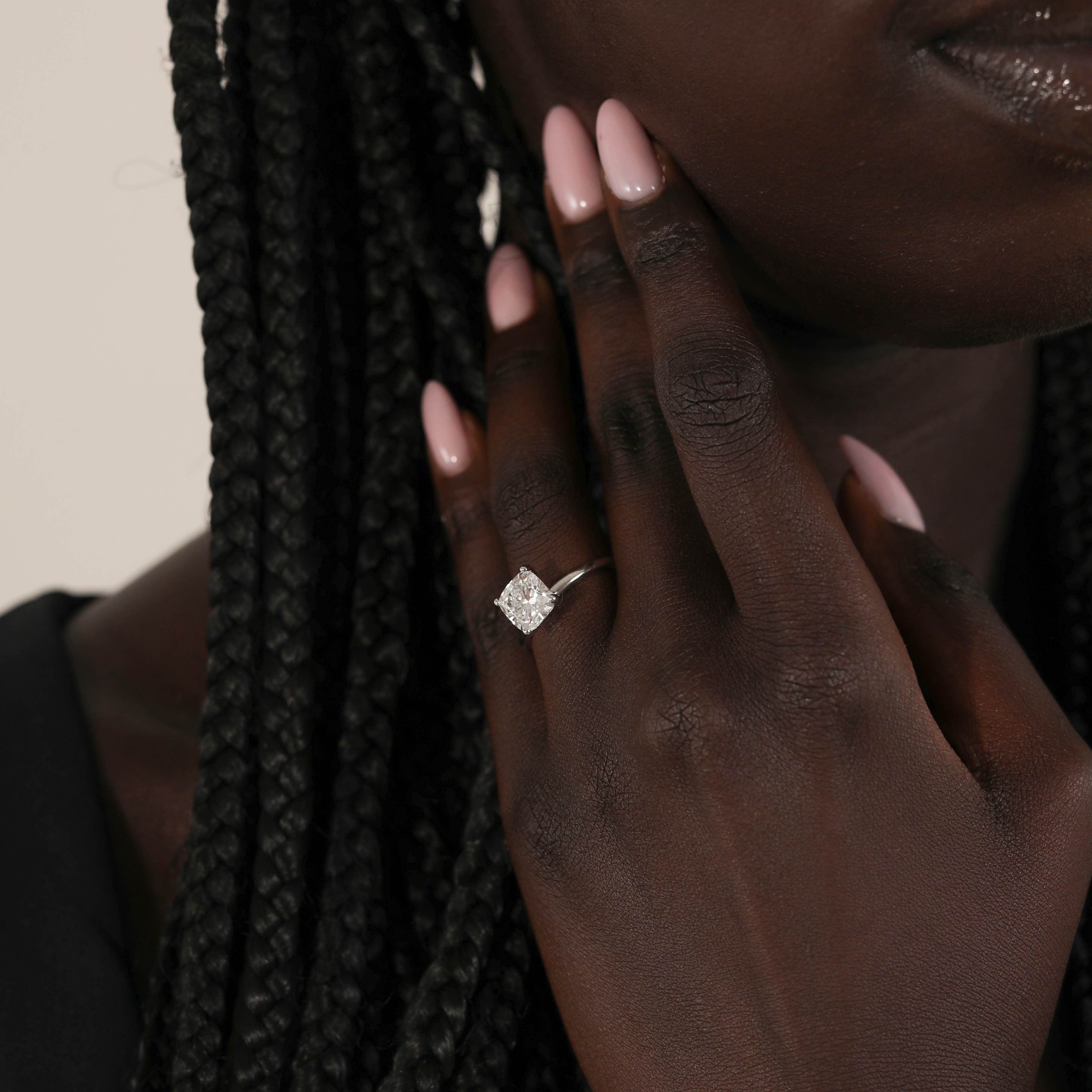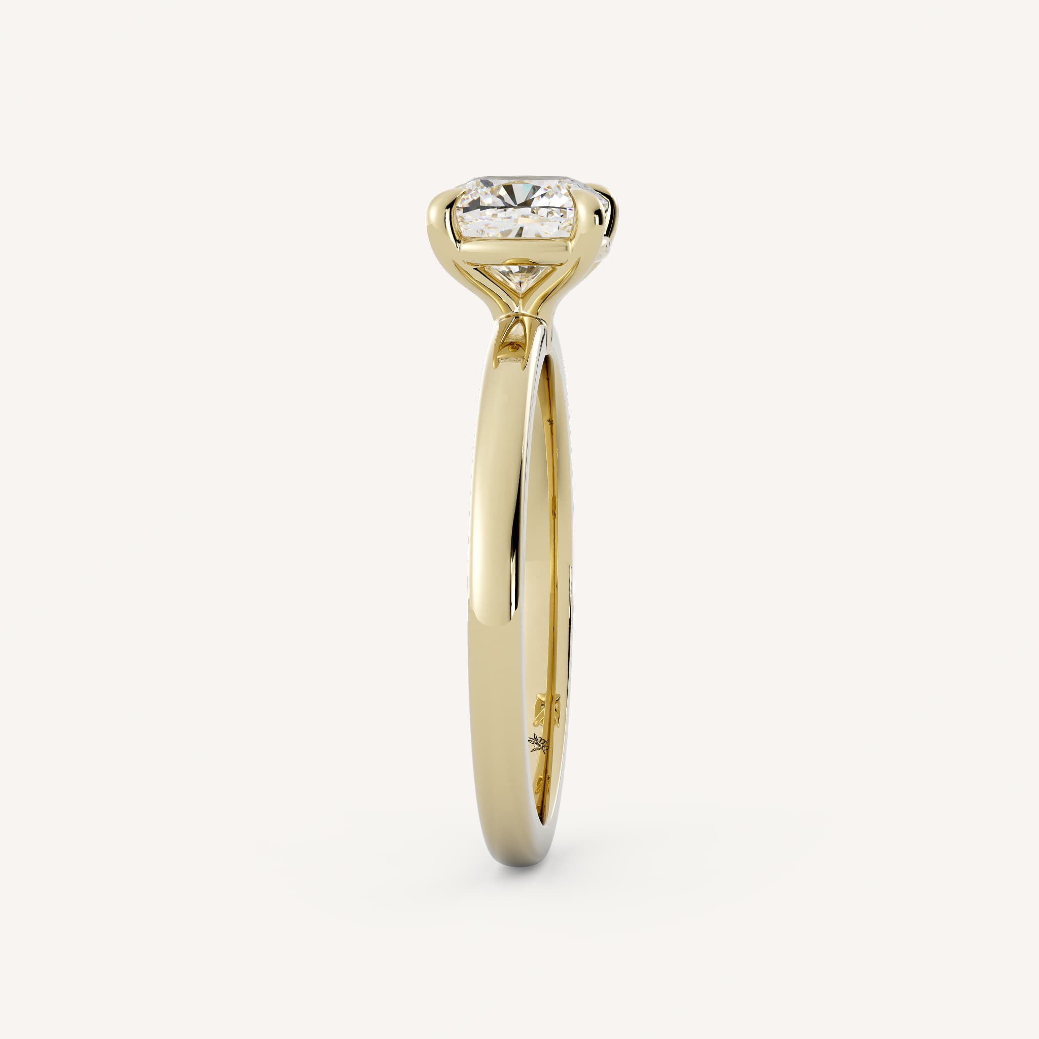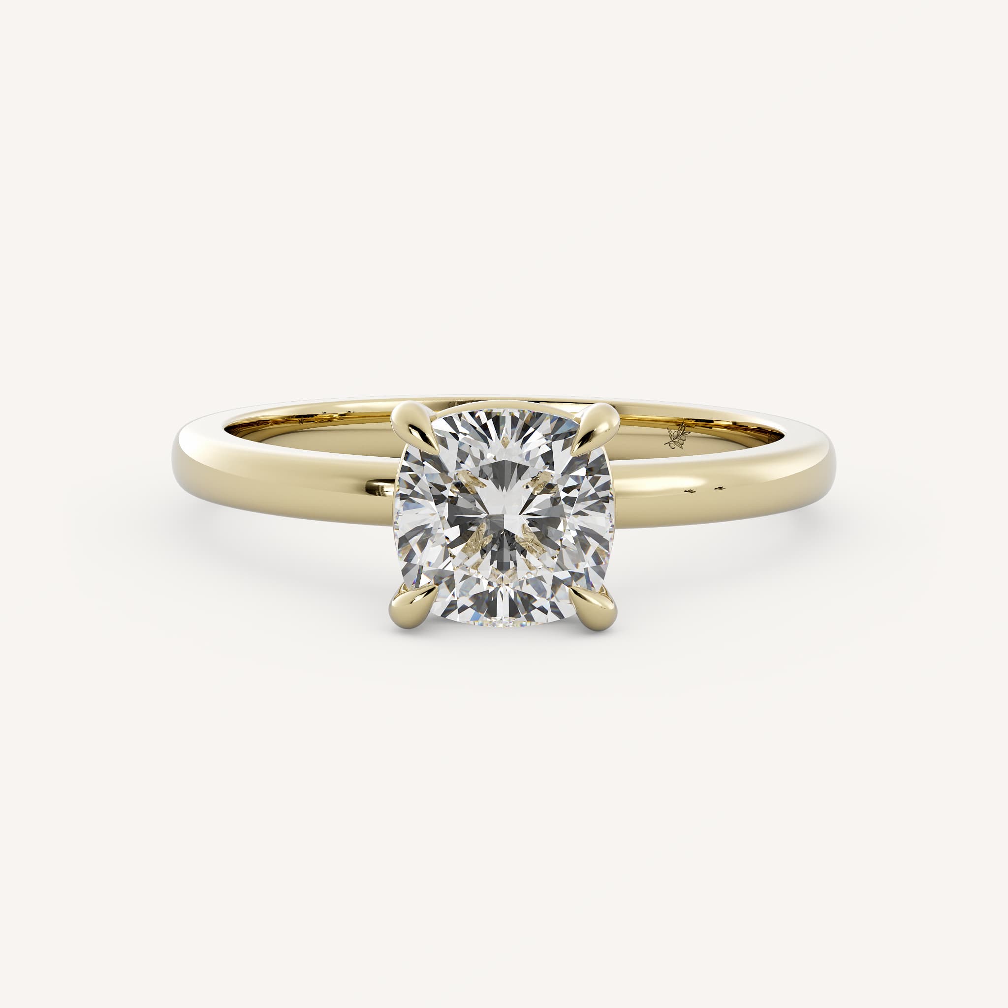 Levitt features an elegant cushion center stone set with claw prongs in a traditional solitaire setting on a half round shank.