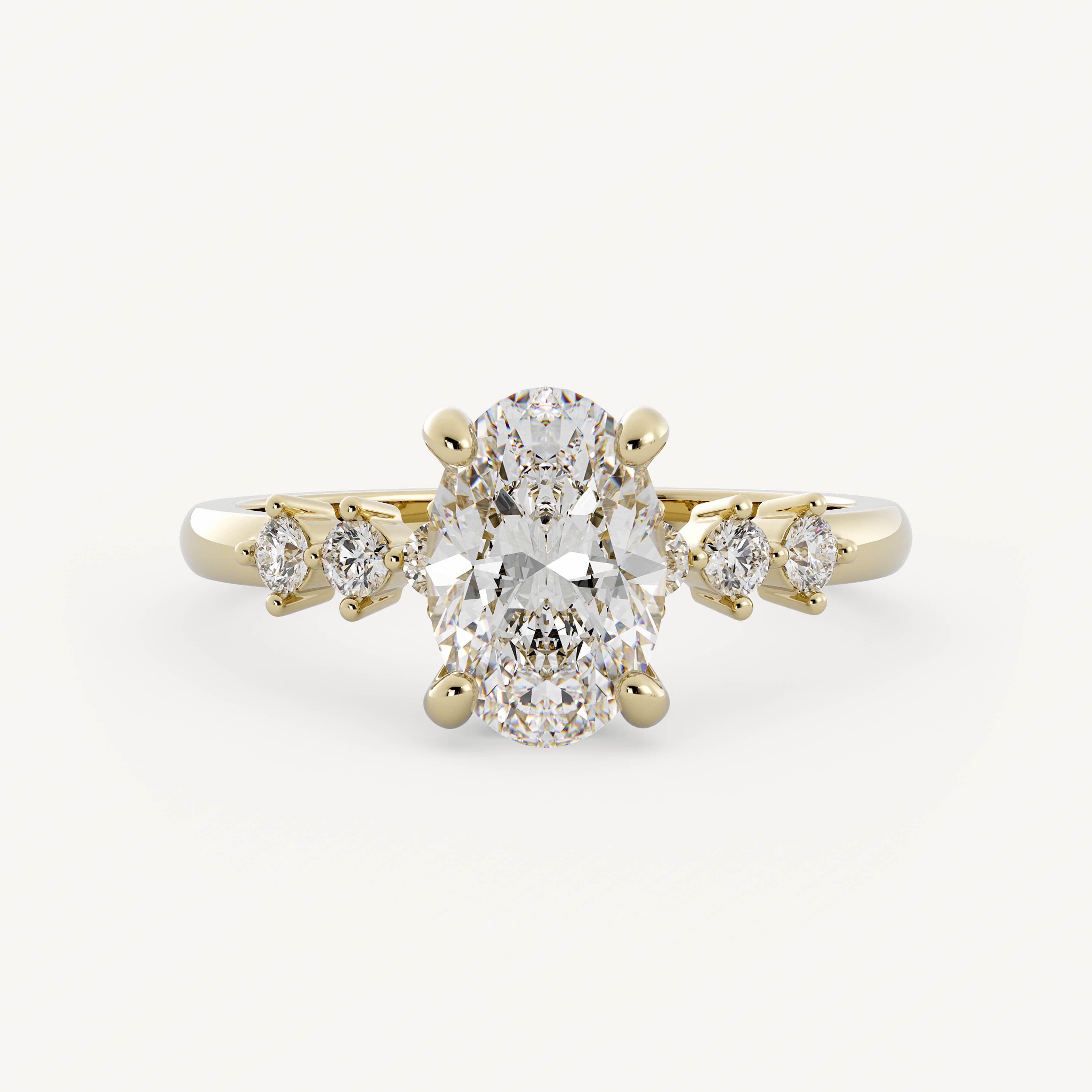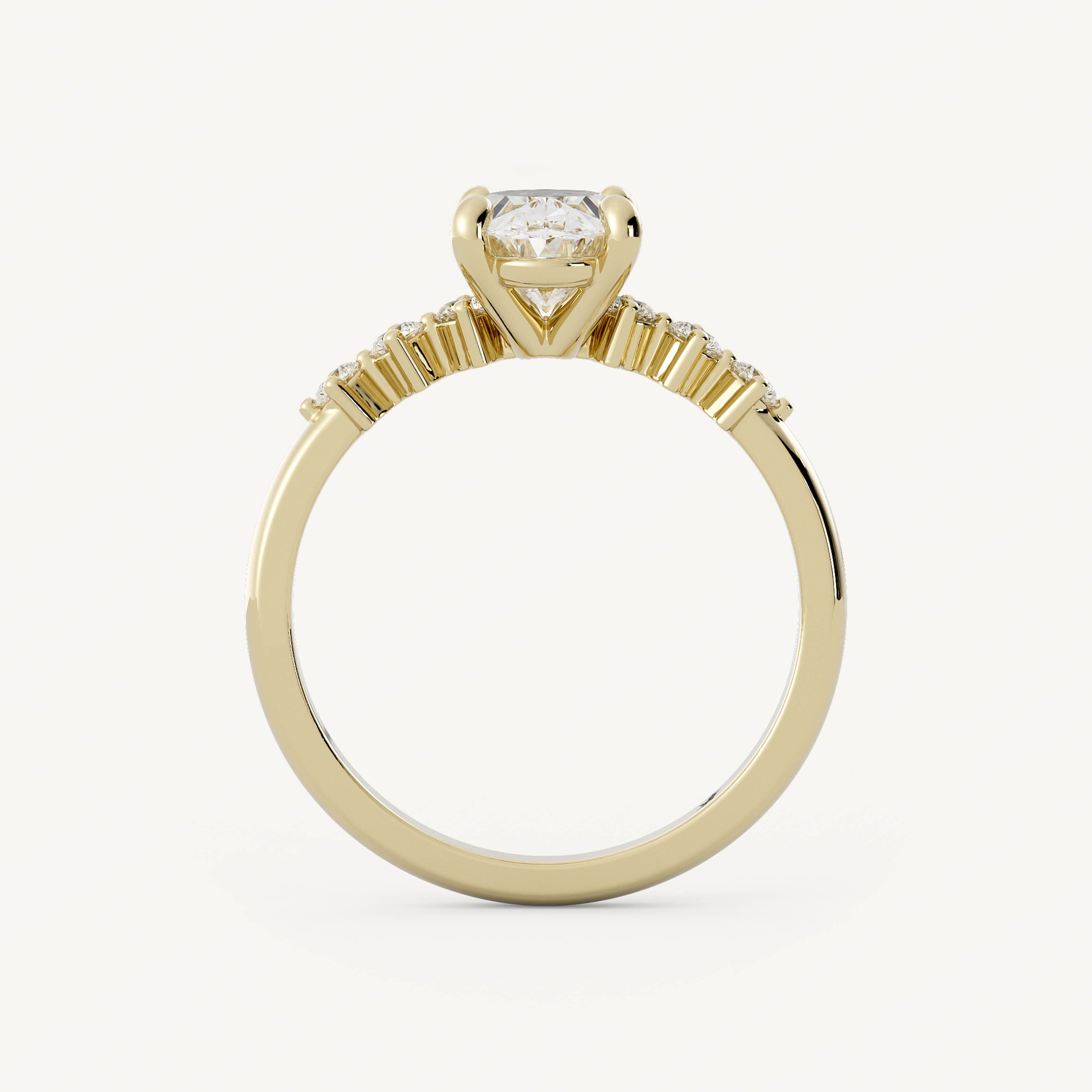 Lexington features a stunning elongated oval center stone traditionally set with compass set accent stones on a half round shank.