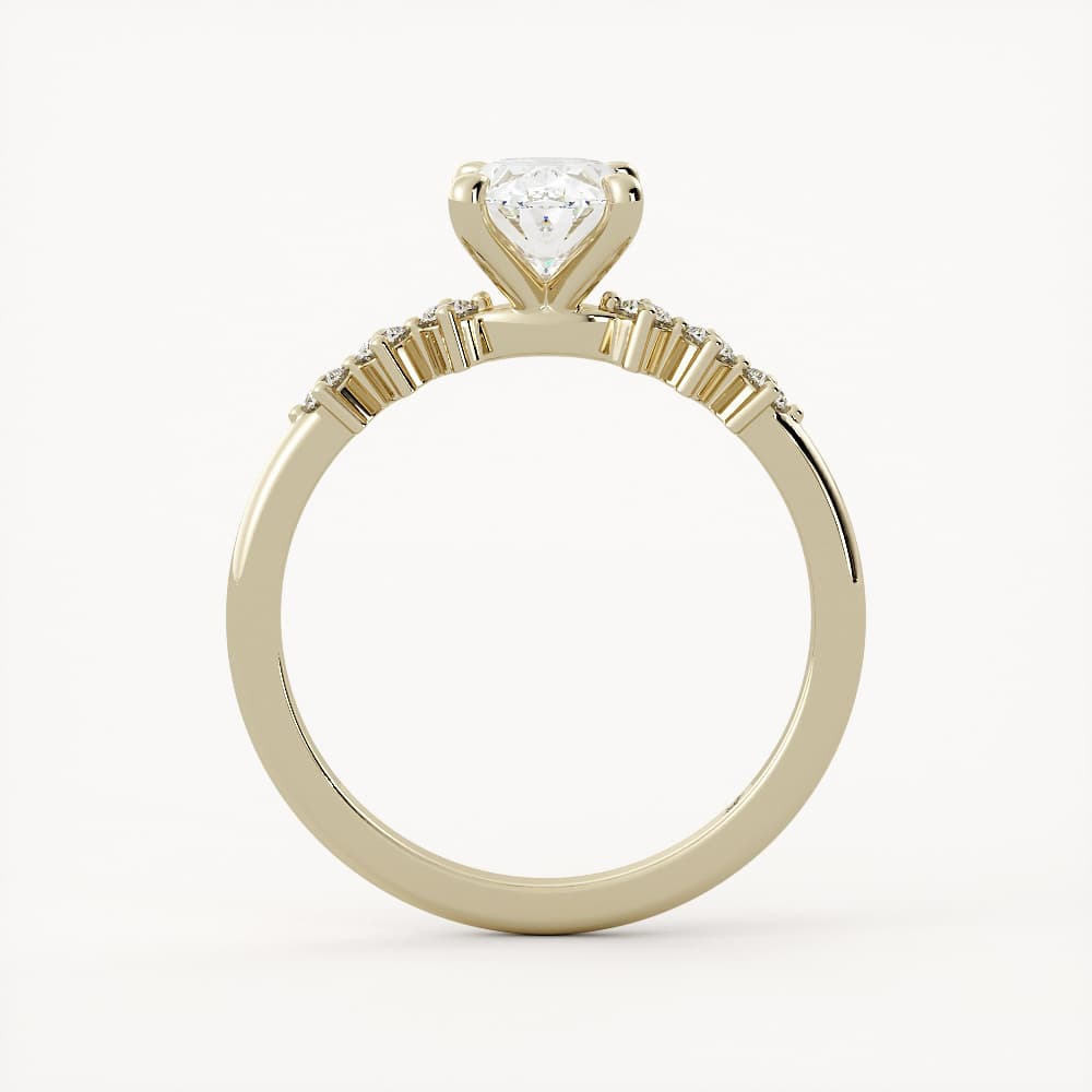 Lexington features a stunning elongated oval center stone traditionally set with compass set accent stones on a half round shank.