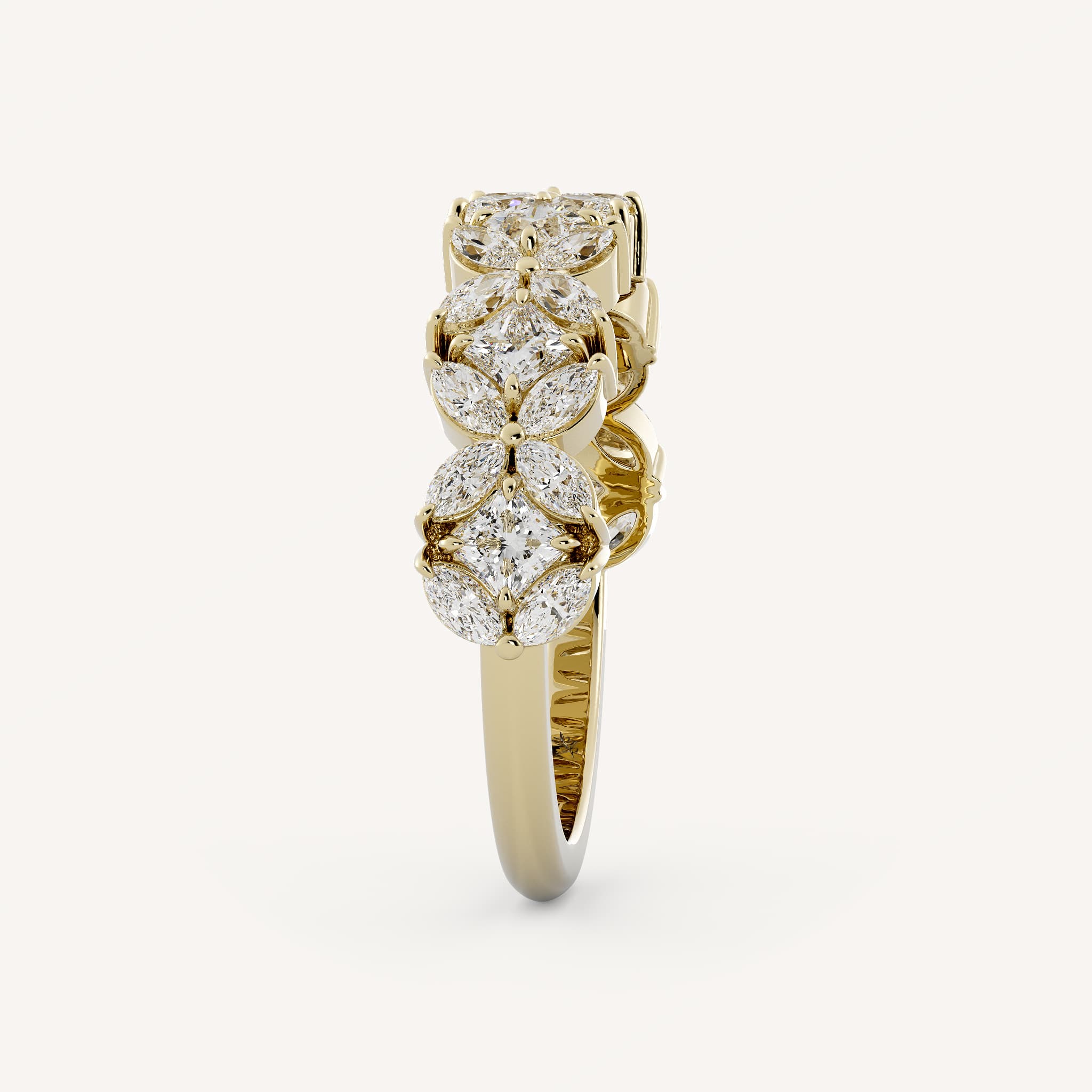 Lily is a half eternity band featuring an intricate pattern of princess and marquise stones.