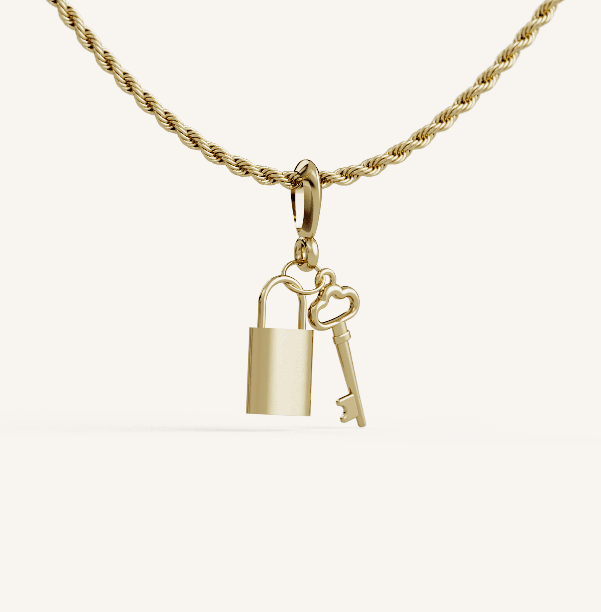 Symbolizing protection and longevity, The Lock & Key Charm is a fine jewelry classic crafted entirely in 14K gold.