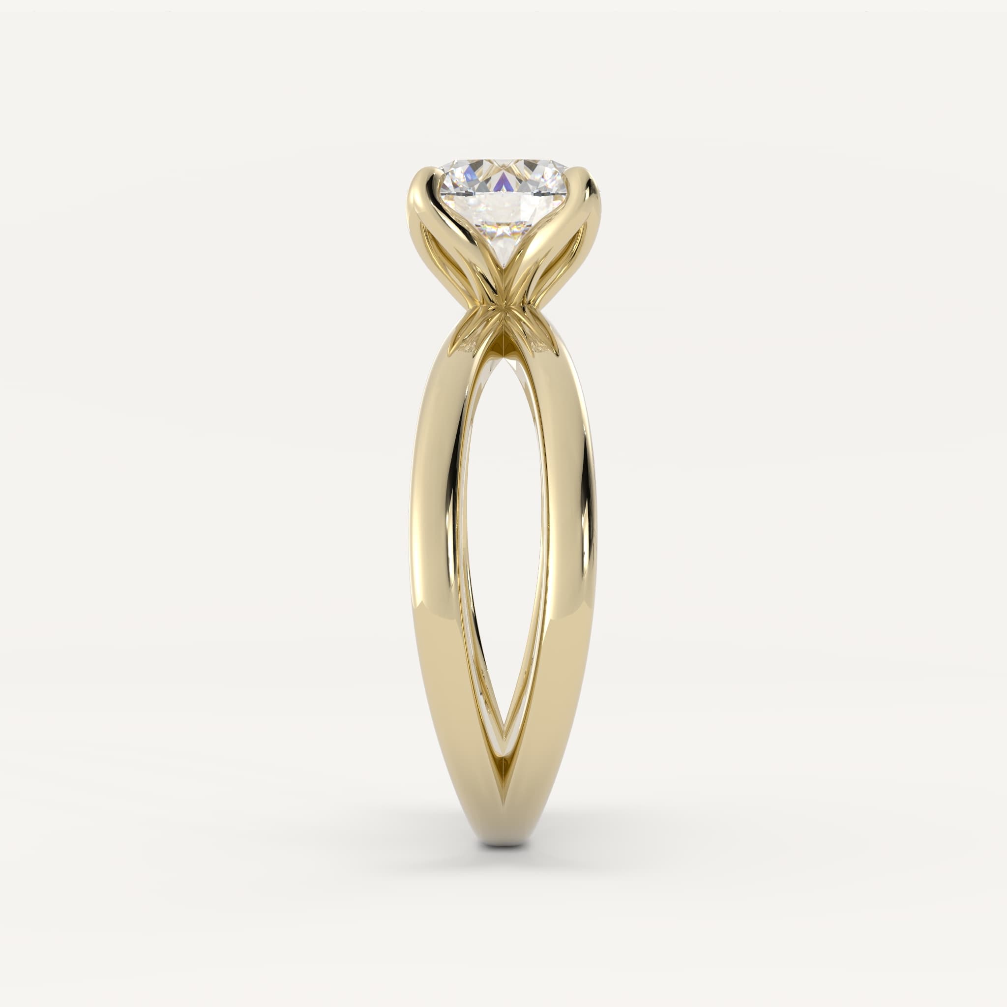 Maysen features a round center stone set in tulip prongs with a dramatic split shank.