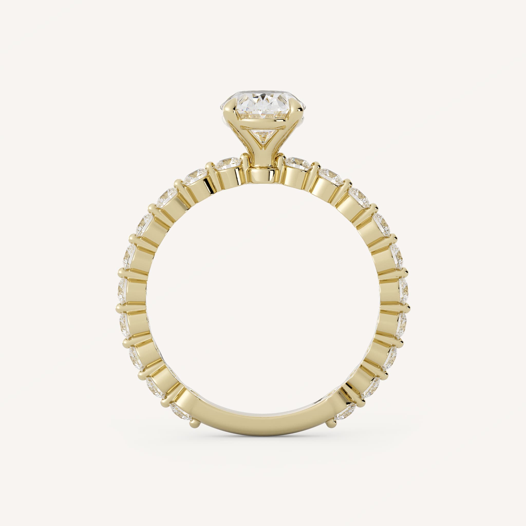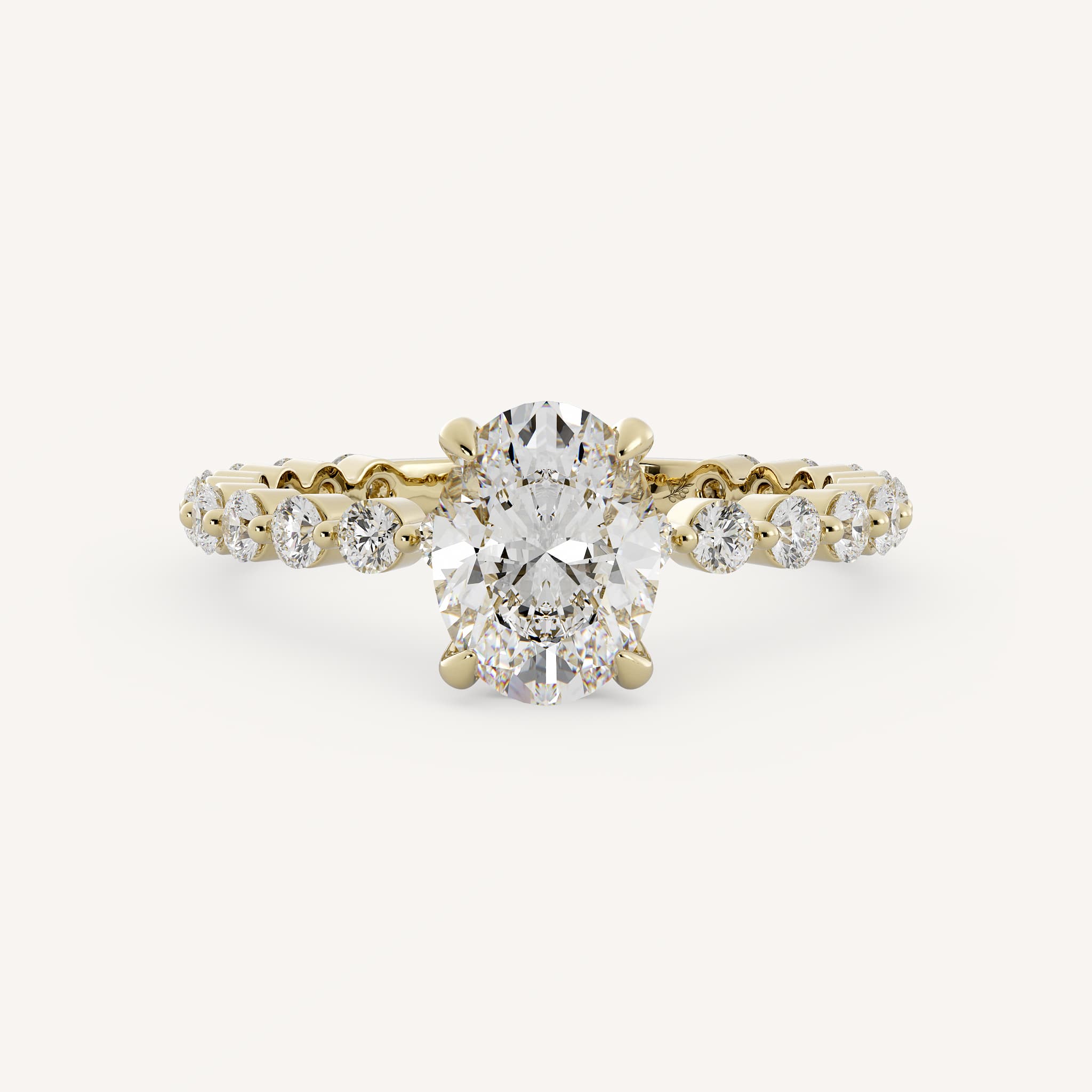 Megan features a charming oval center stone set in a traditional solitaire setting and single shared prong diamond shank.