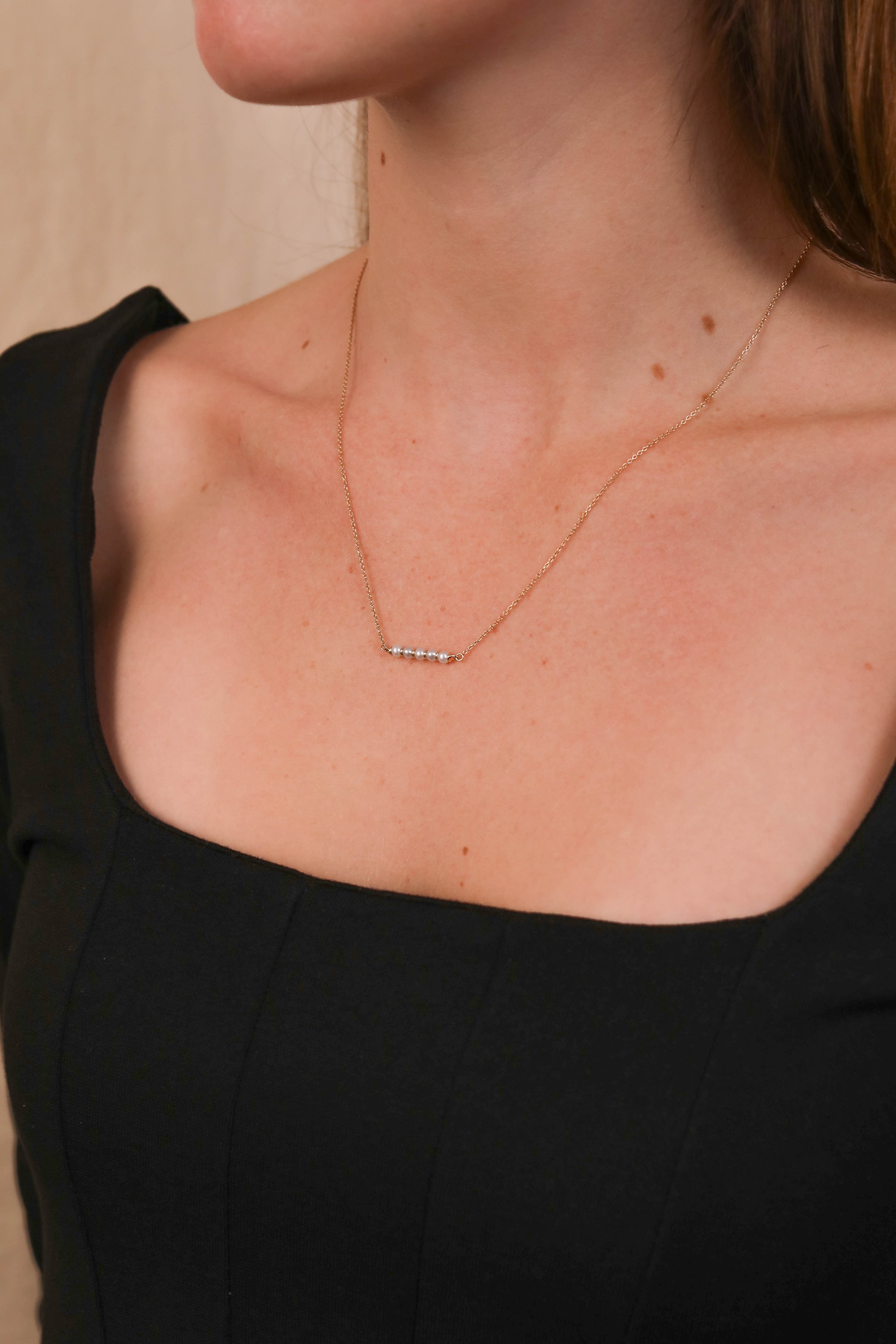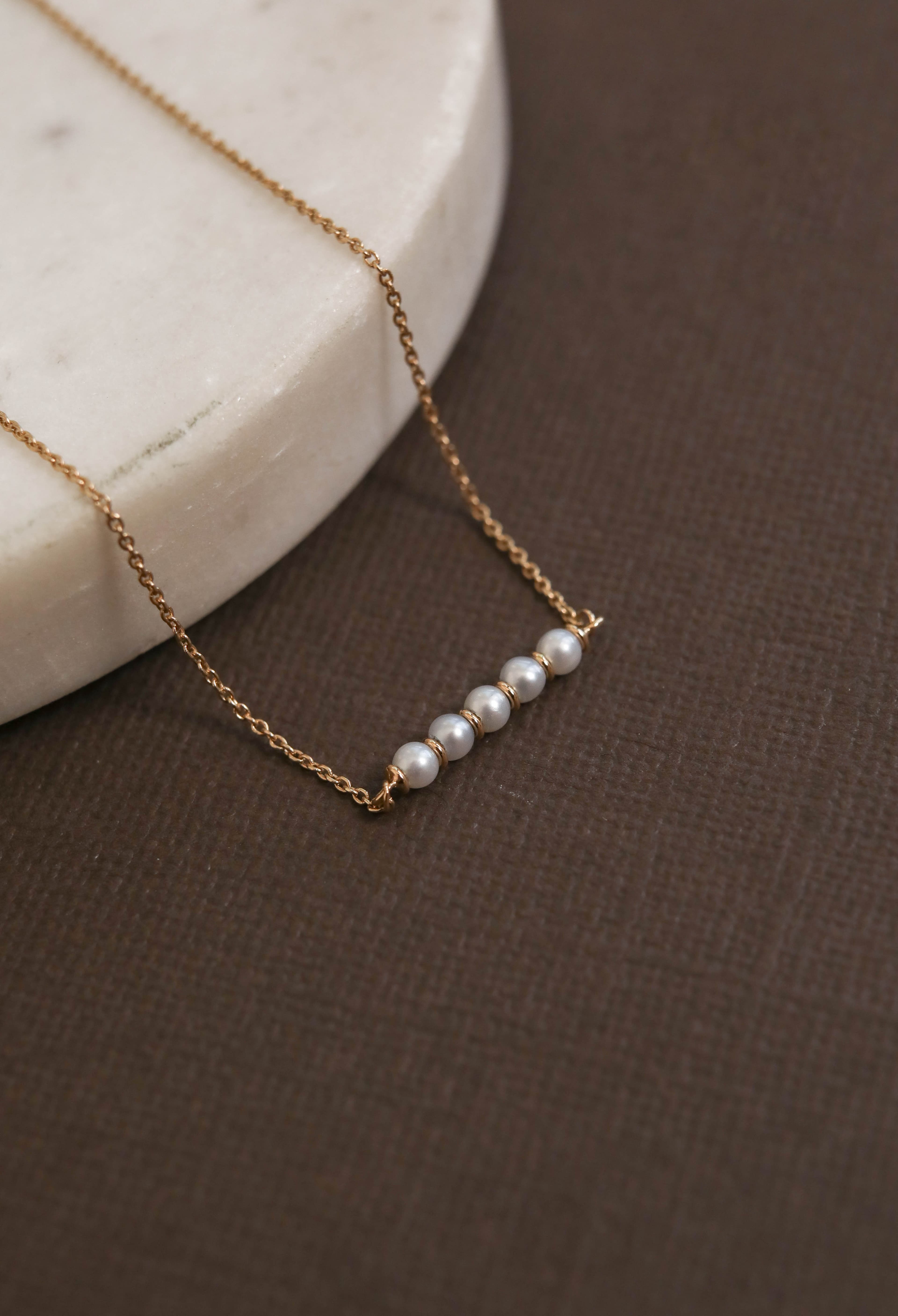 Gold 18 inch cable chain necklace featuring lobster clasp and bar pendant with cultured white freshwater pearls