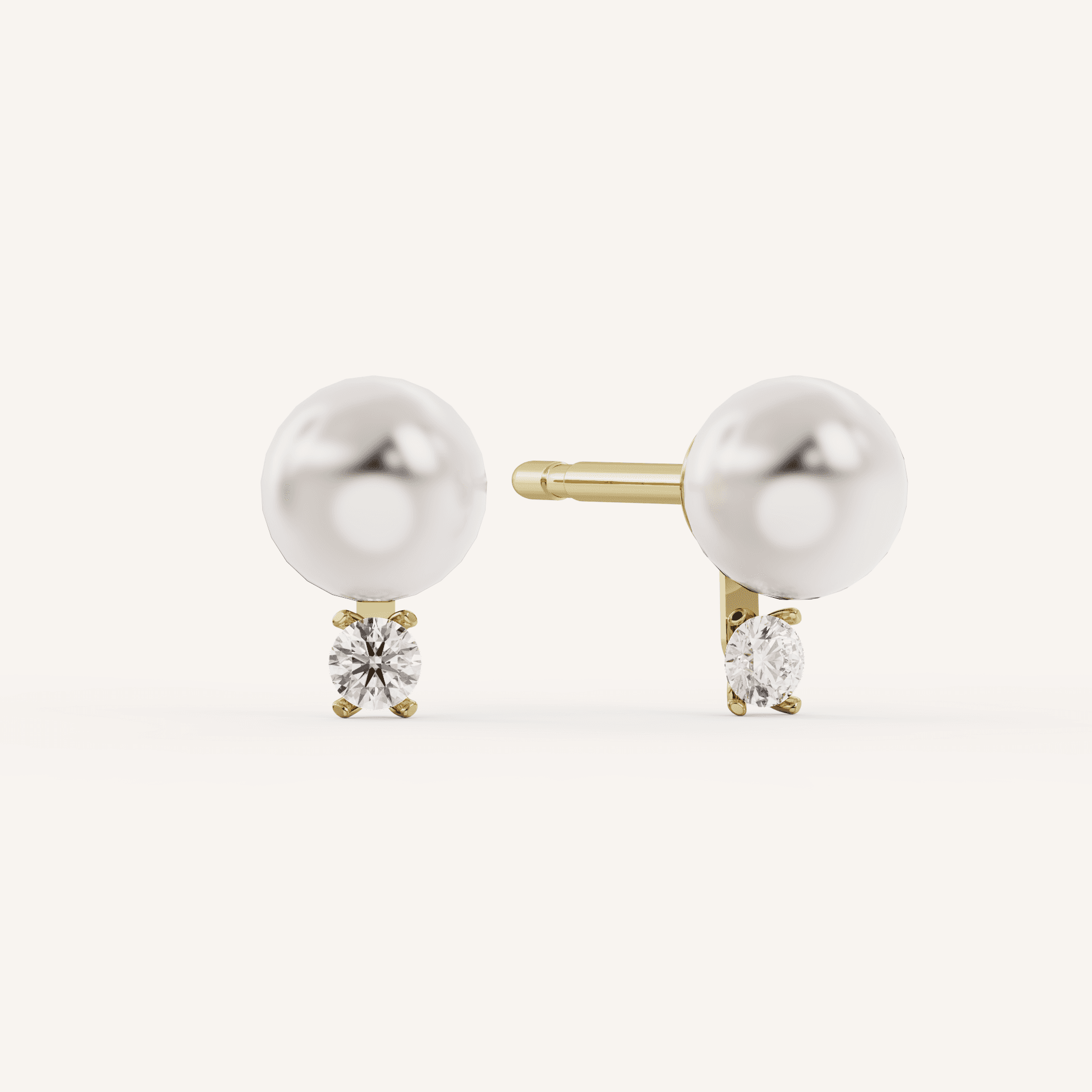 Adding a touch of dainty elegance, the Pearl & Diamond Studs showcase a 5mm freshwater pearl and 0.2 carat natural diamond set together in 14K gold.