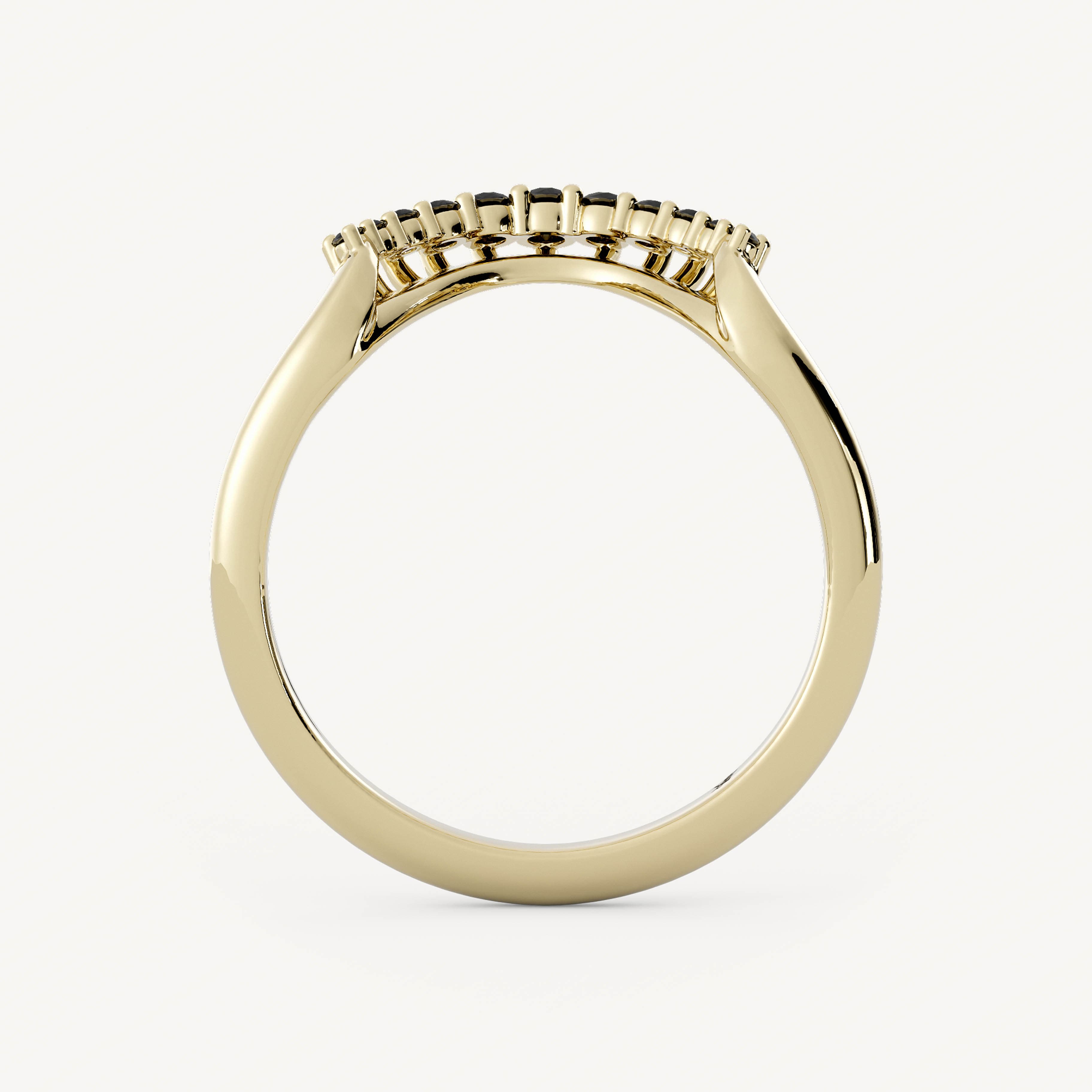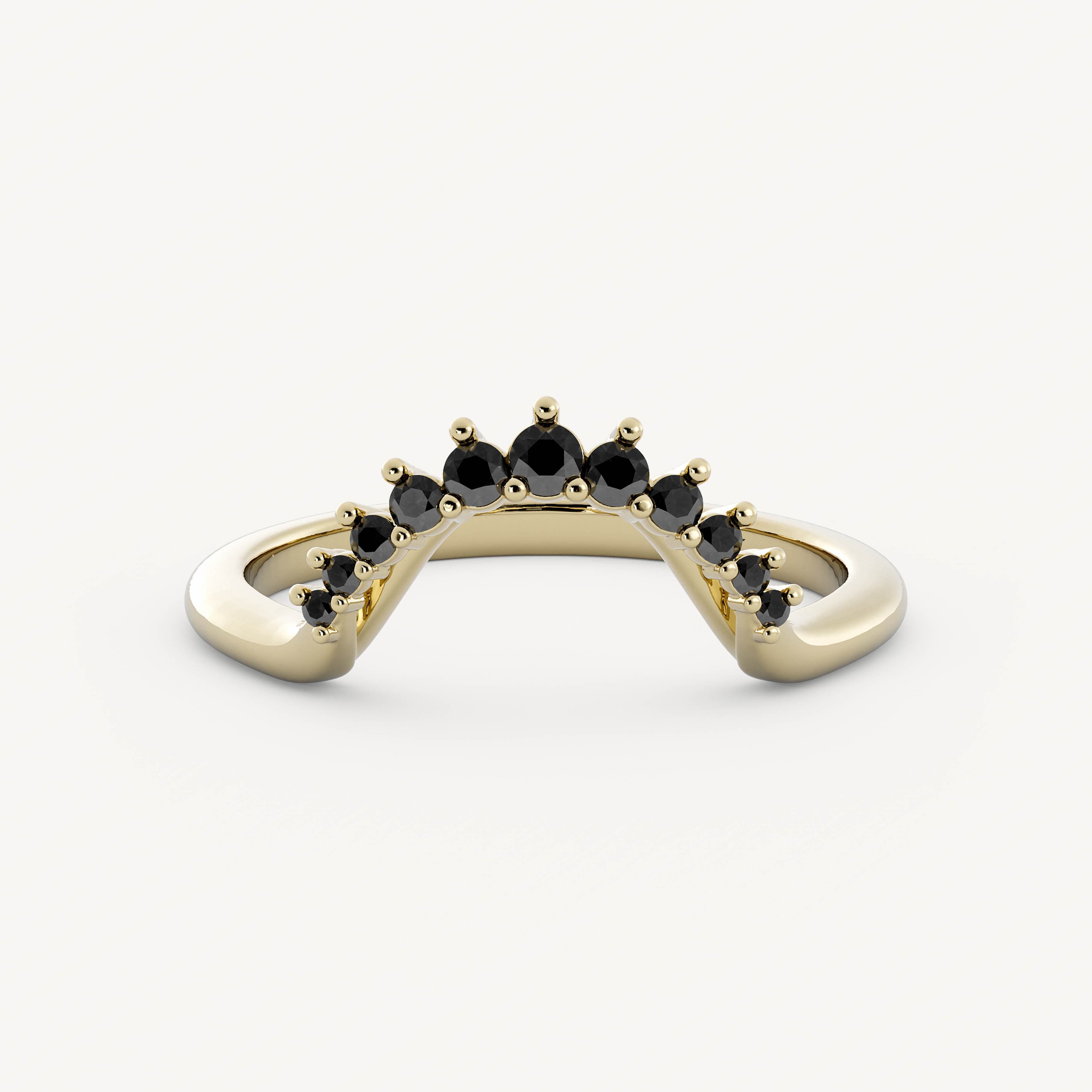 Pepper Band – Burst features graduating black diamond round stones set on a contoured basket on a half round shank made to pair with Pepper.
