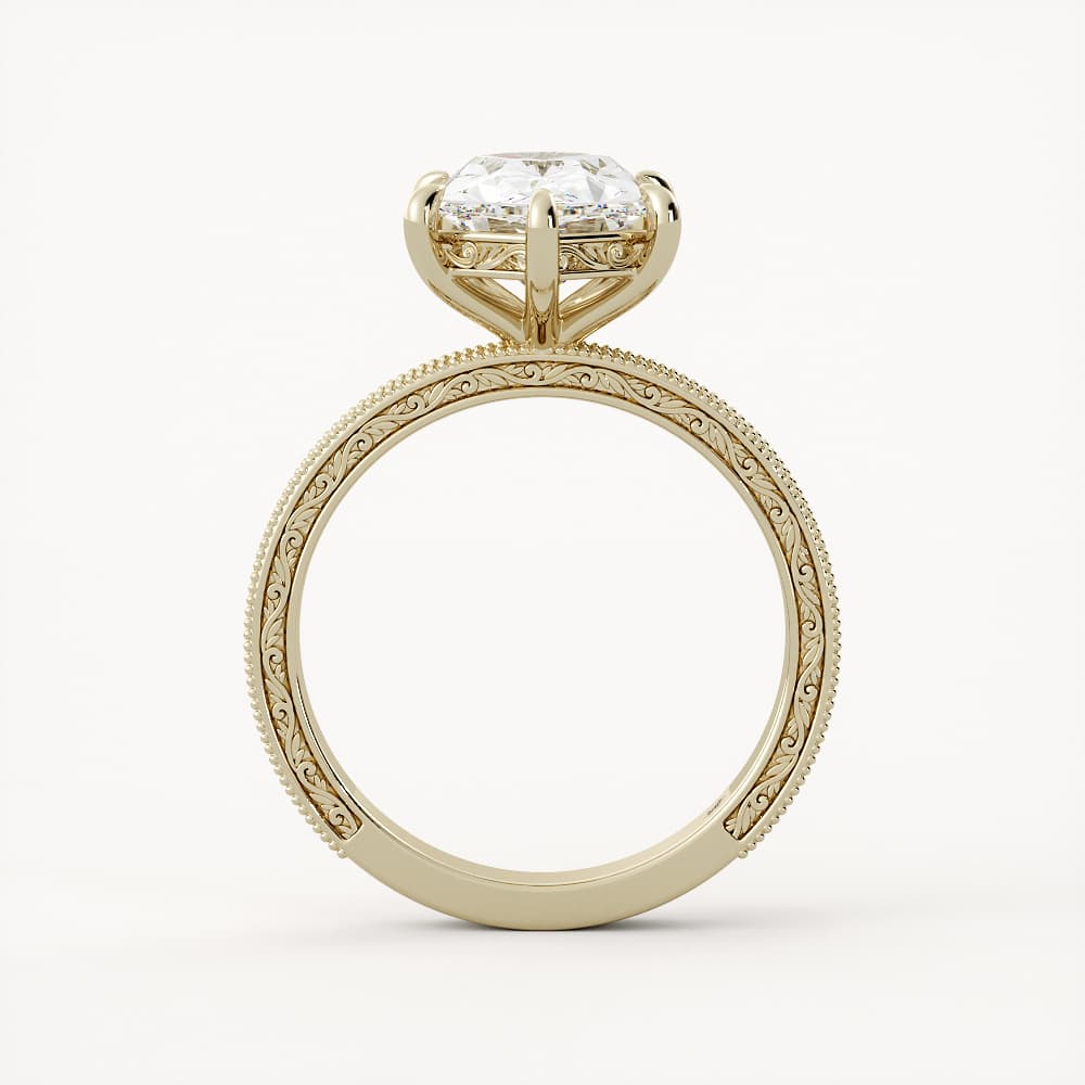 Persephone elevates the intricate detailing, milgrain, and rich texture of our Vintage band into a design of enduring symbolism. Spring-inspired elements are woven throughout this 3/4th eternity band, a quiet reference to renewal and return. The band reflects the rhythm of life’s seasons, ever turning, ever repeating. Though not every moment exists in full bloom, Persephone reminds us to seek what remains constant: the small, evergreen details that endure through time.