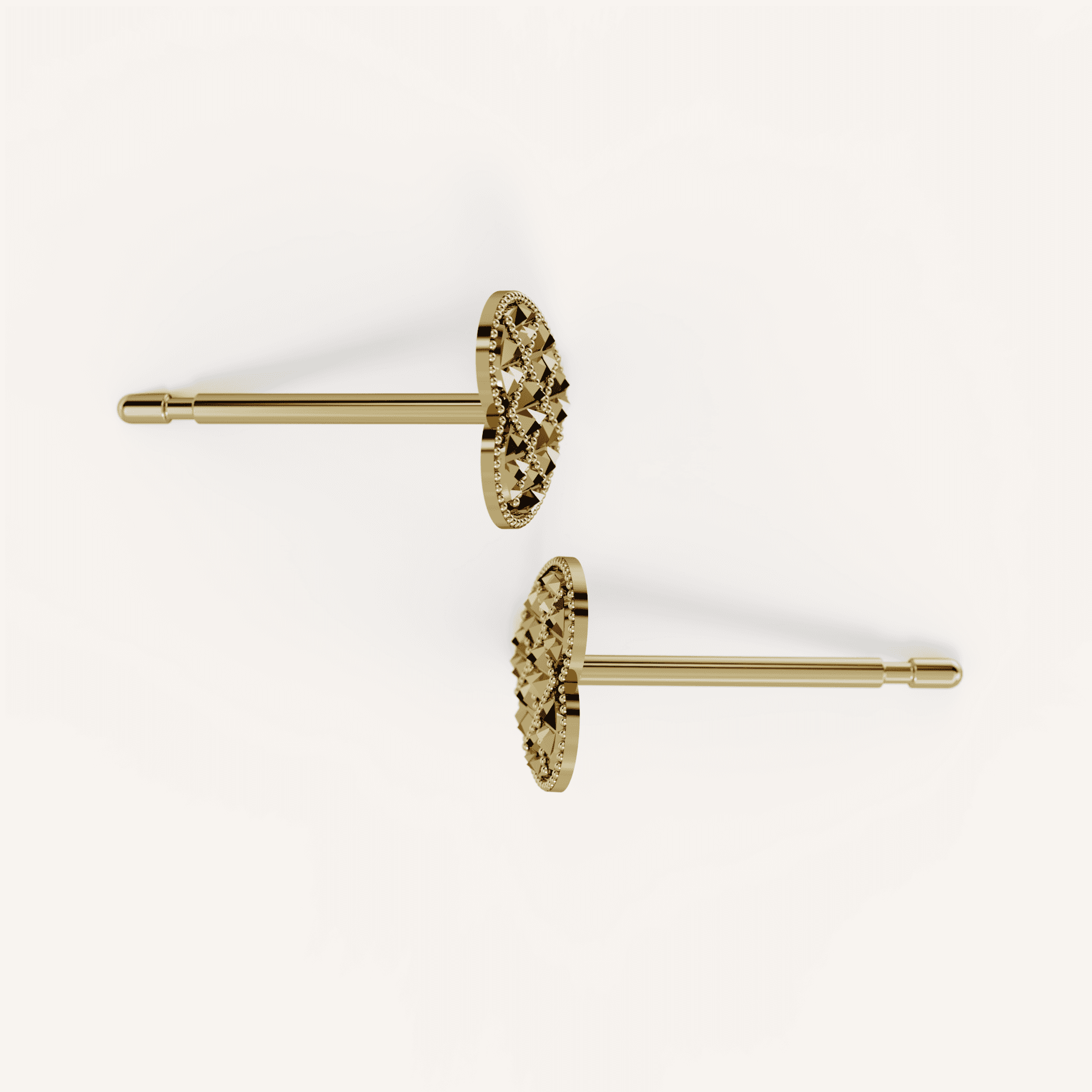 A perfect patchwork of love, the Quilted Heart Studs sparkle in 14K Yellow Gold.