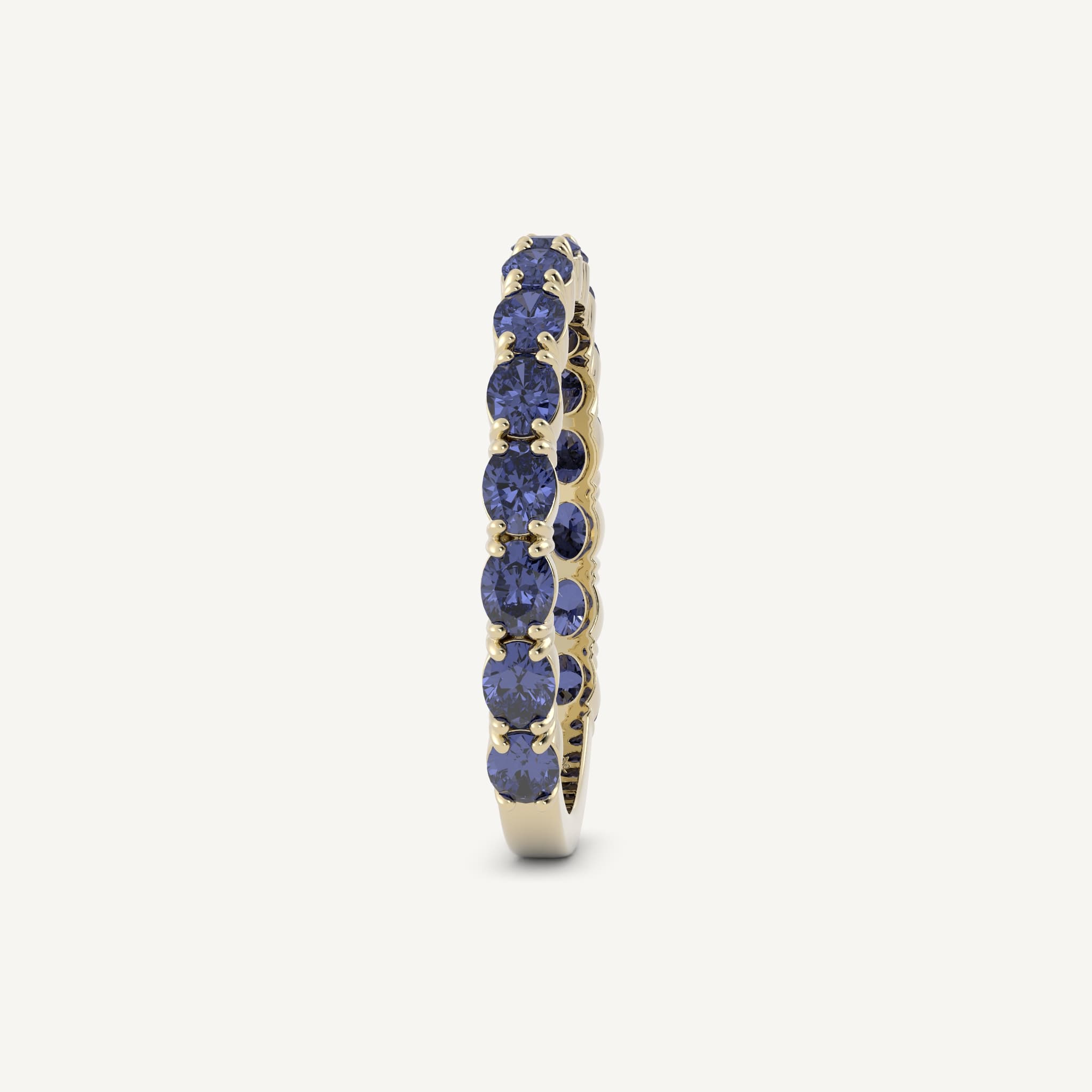 Raine features flowing oval blue Lab-grown Sapphire stones set in a half eternity shank.