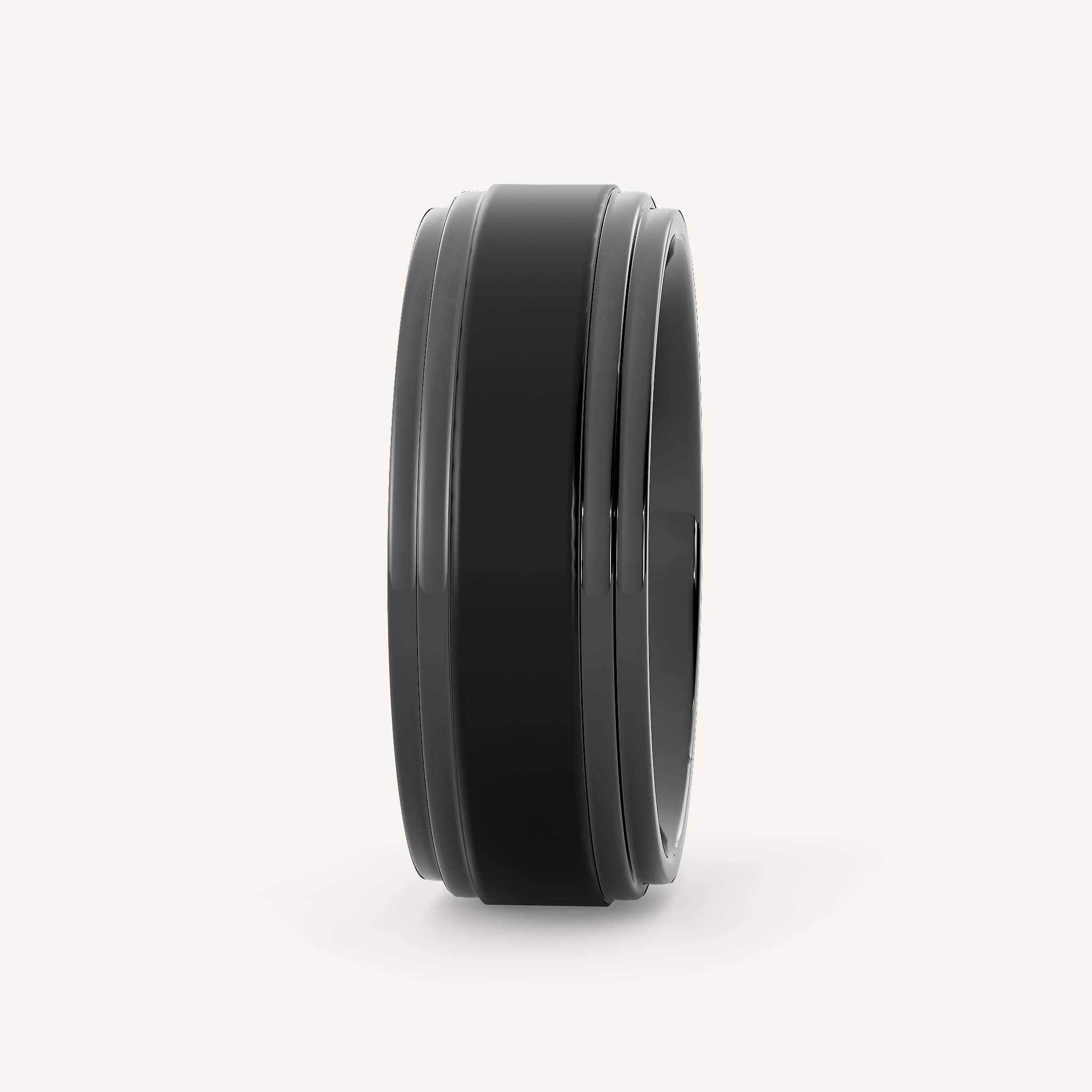 Riggs is a striking 8mm band made of black titanium with ridge detail.