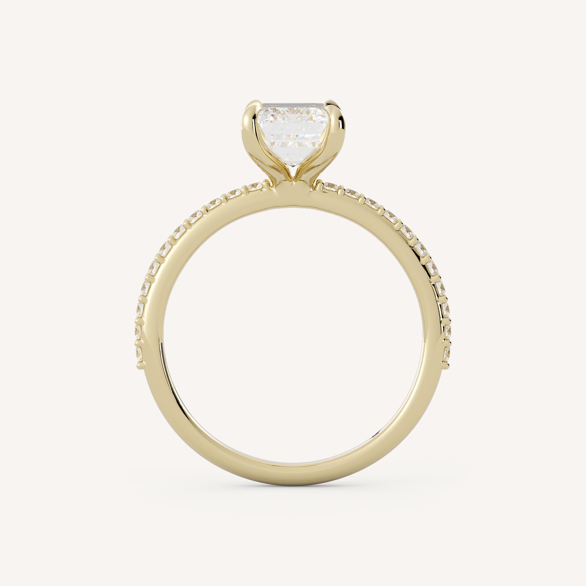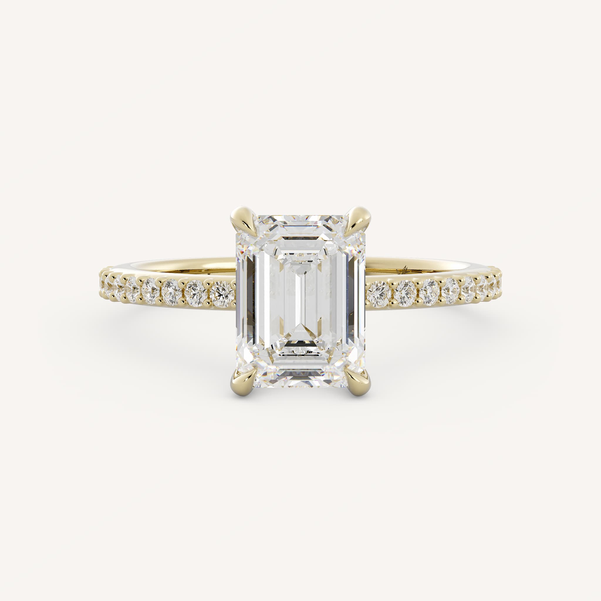 Rory features an emerald shaped center stone set in a traditional solitaire setting with a darling traditional prong round diamond shank.