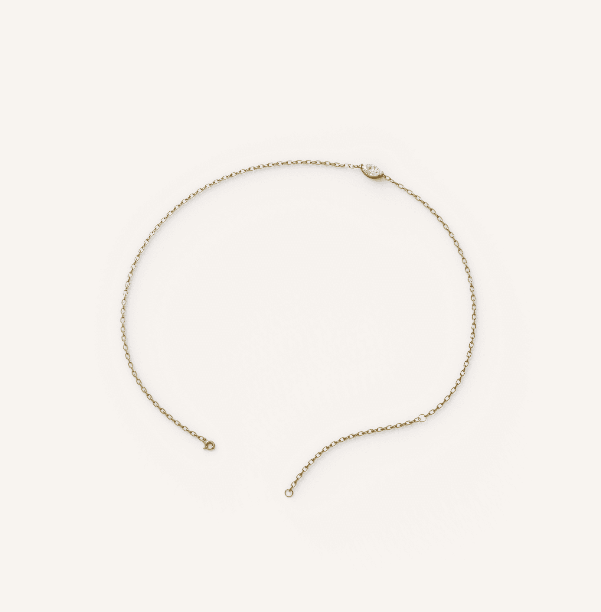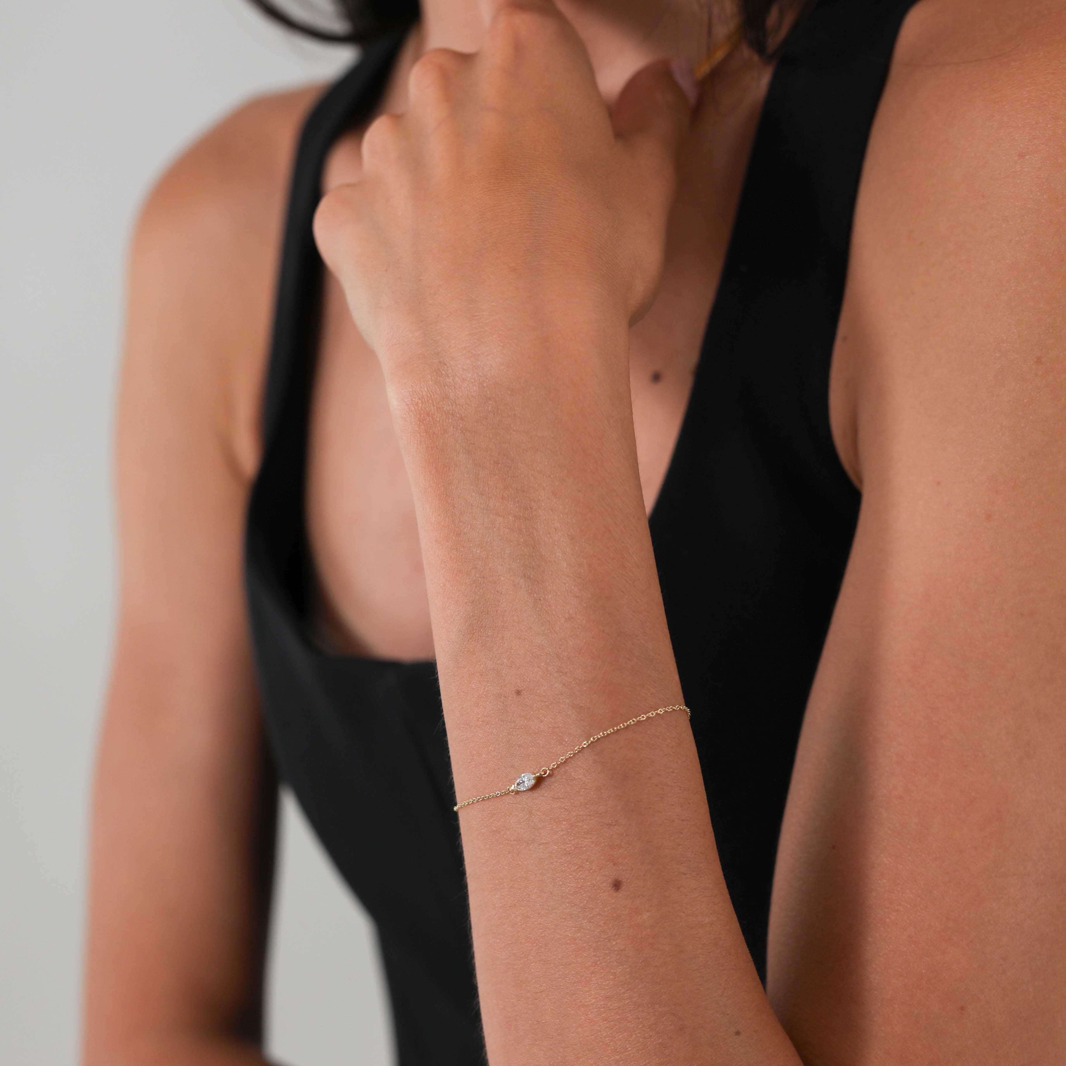 Gold cable chain bracelet featuring a 1/4ct marquise cut lab diamond. The bracelet is adjustable to be 6.5 to 7.5 inch length.
