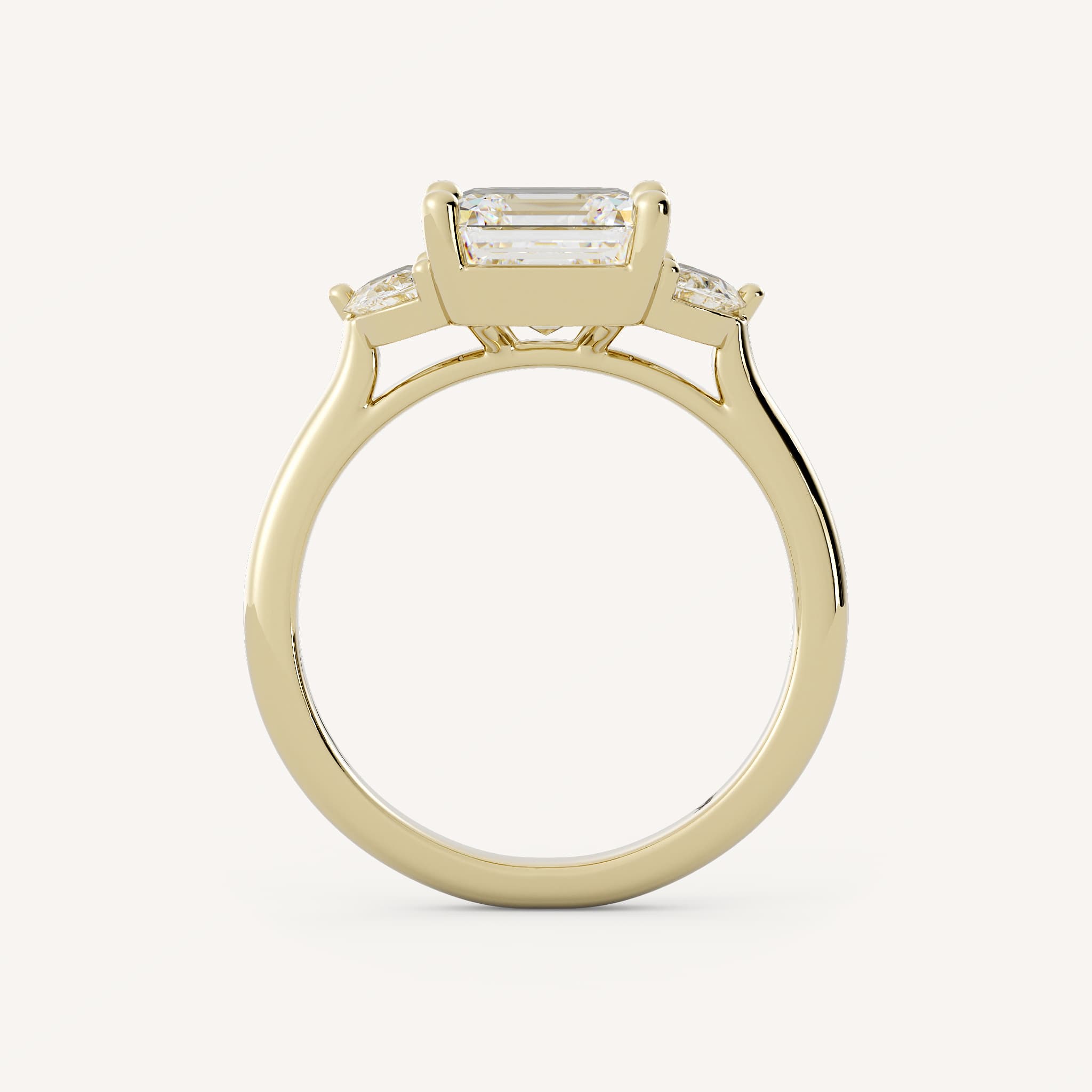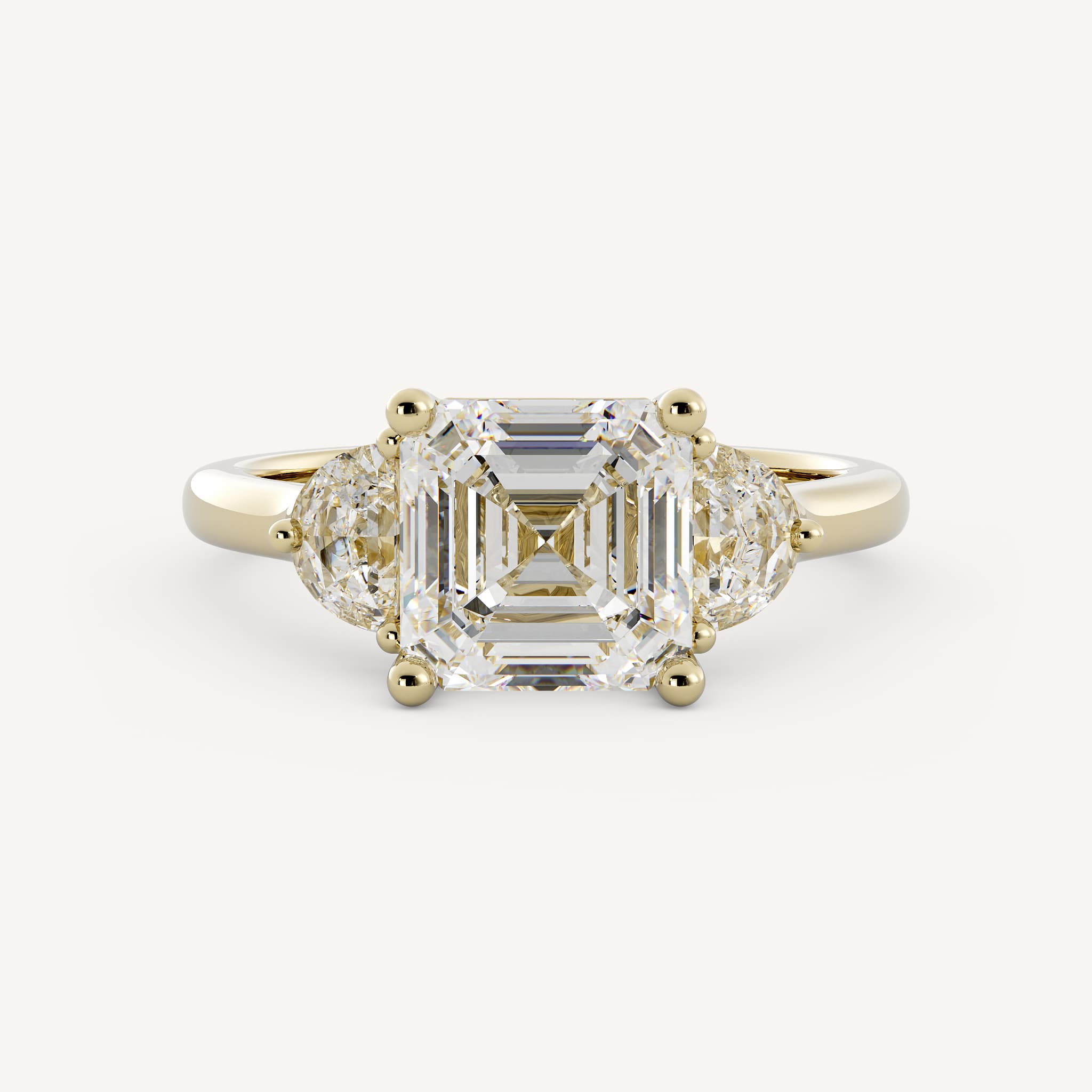 Vienna features a bold asscher center stone accented by half-moon moissanite side stones set in a cathedral setting with a half round shank.