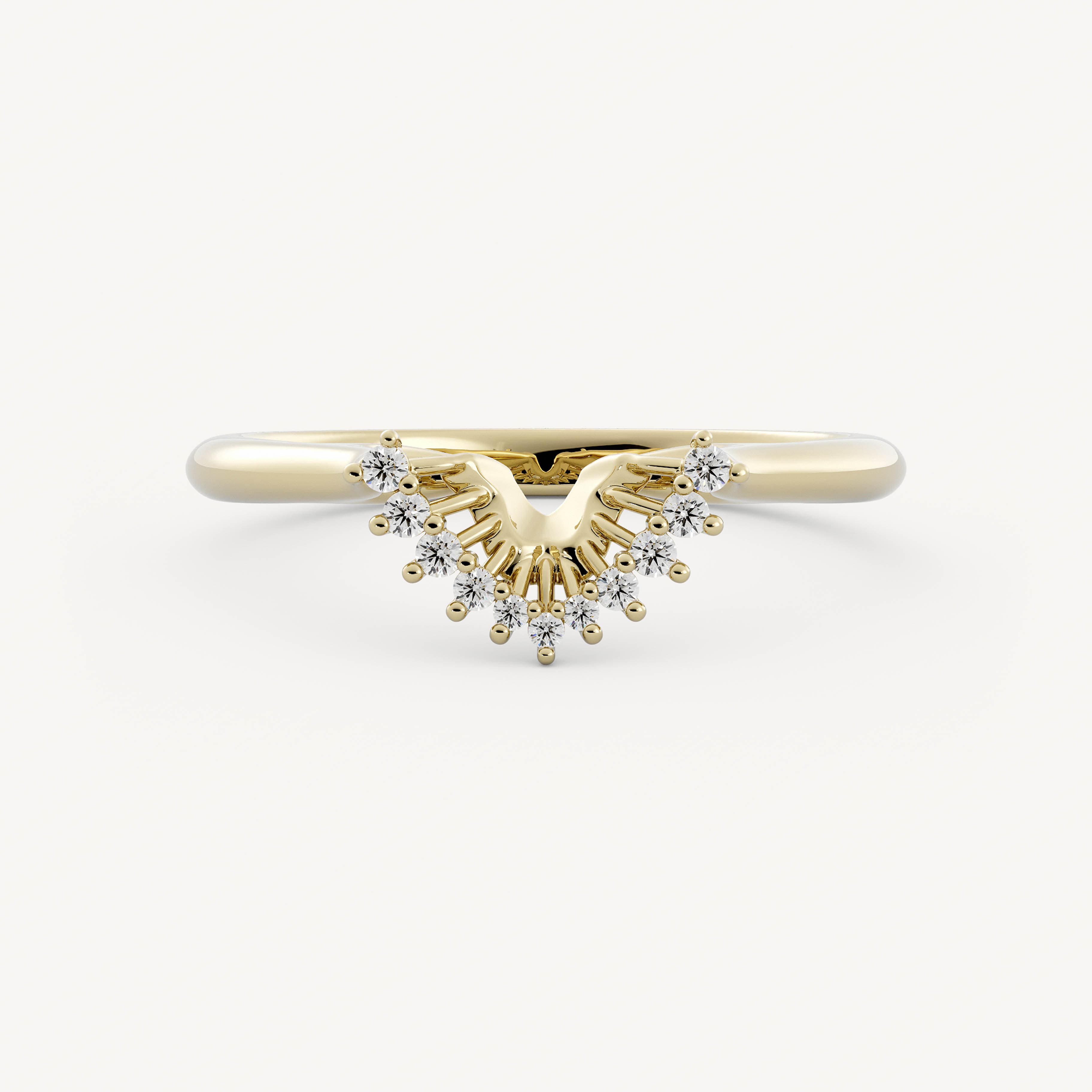Windsor Band features round stones set on a dramatic contoured basket made to pair perfectly with Windsor.
