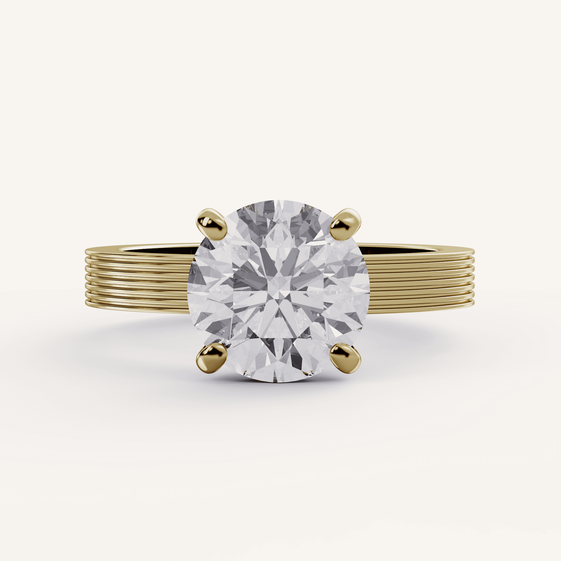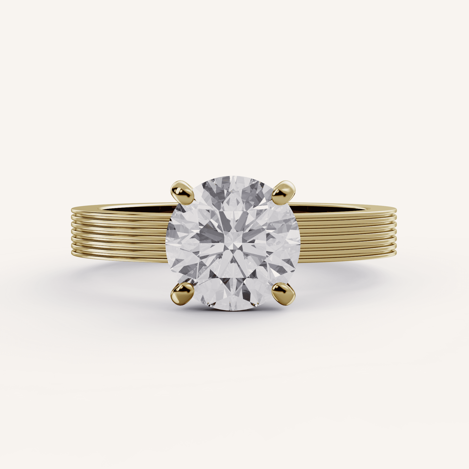 Flush Setting: the head holding the center stone sits very low and flush to the finger.