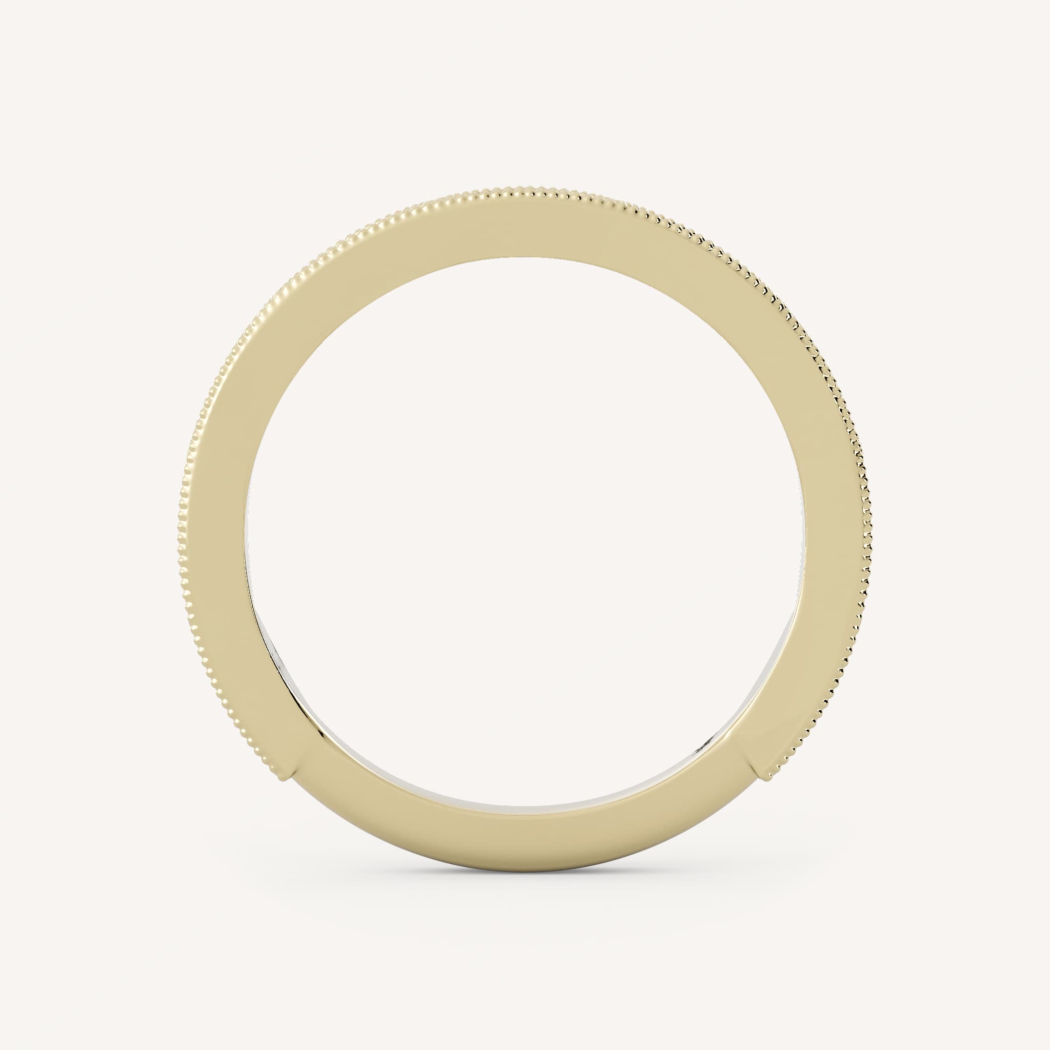 Alice is an intricate 3/4 eternity band with round stones set in a scallop edge bezel design with milgrain detail.