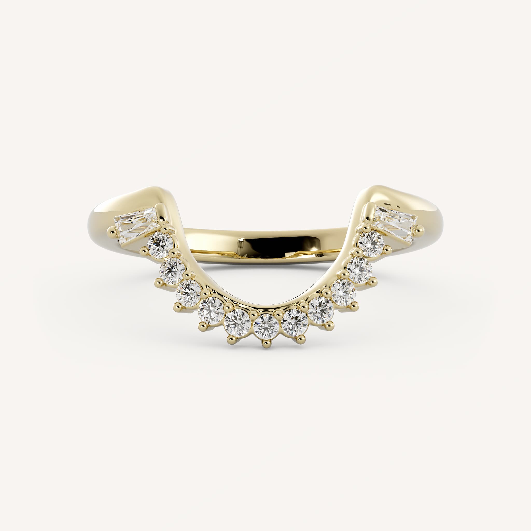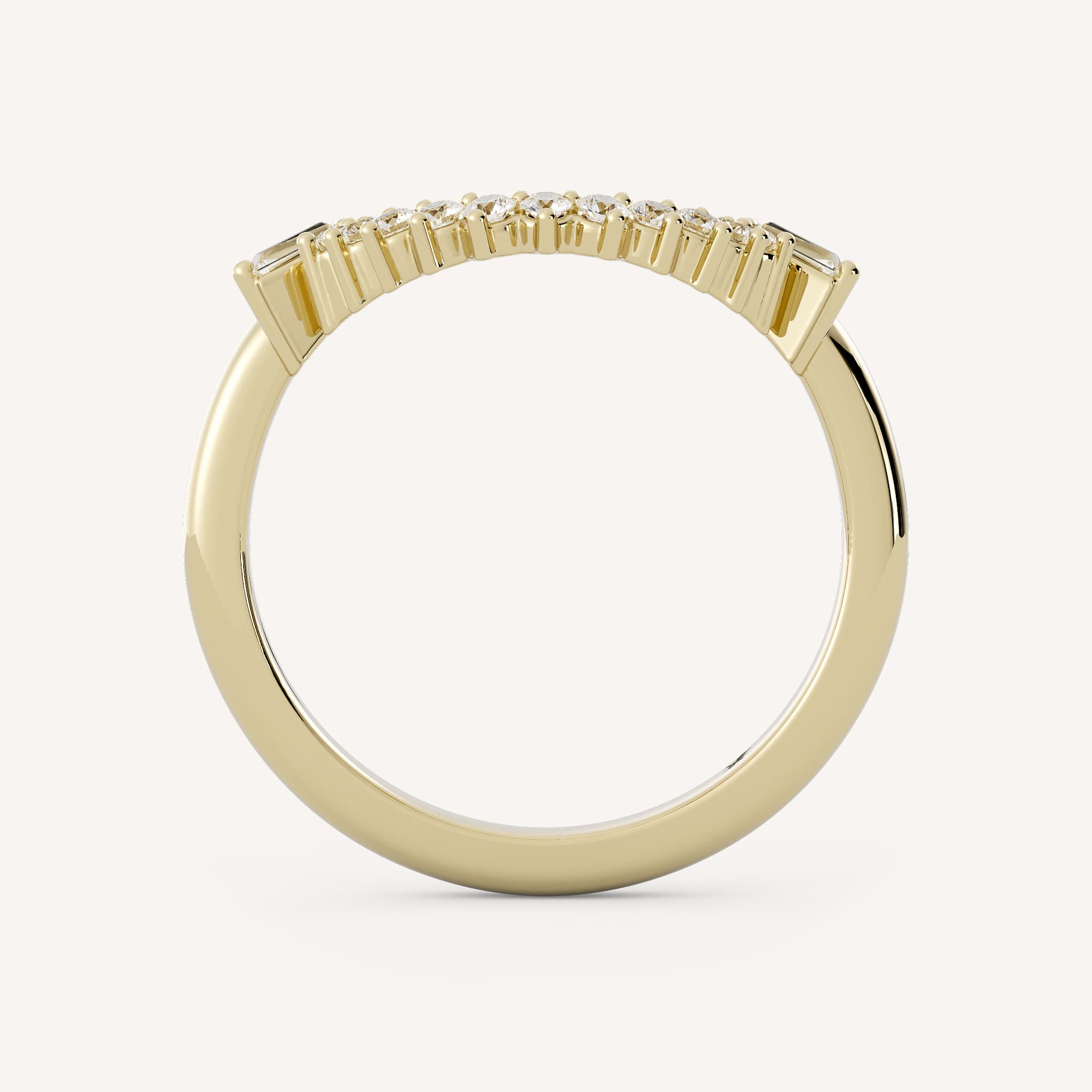 Daisy Band features round stones set on a contoured band with two baguettes on each end made to pair perfectly with Daisy.