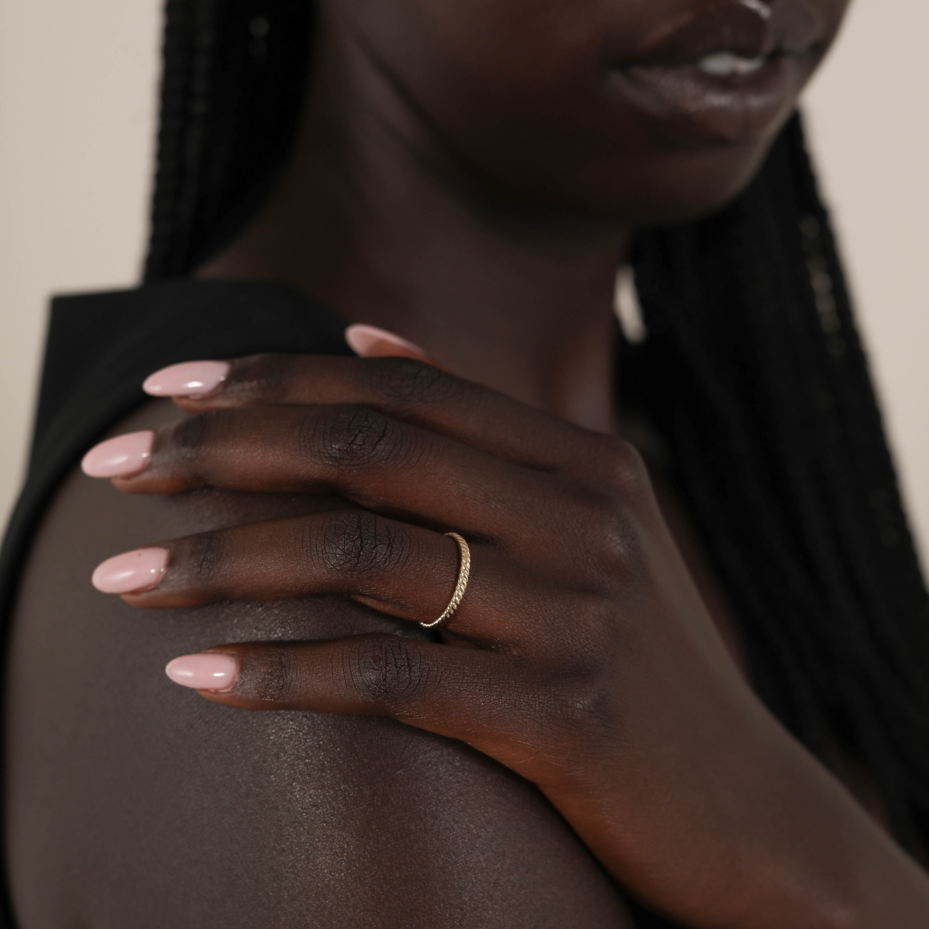 Rope features a simple braided pattern around the band. Offered in multiple widths.