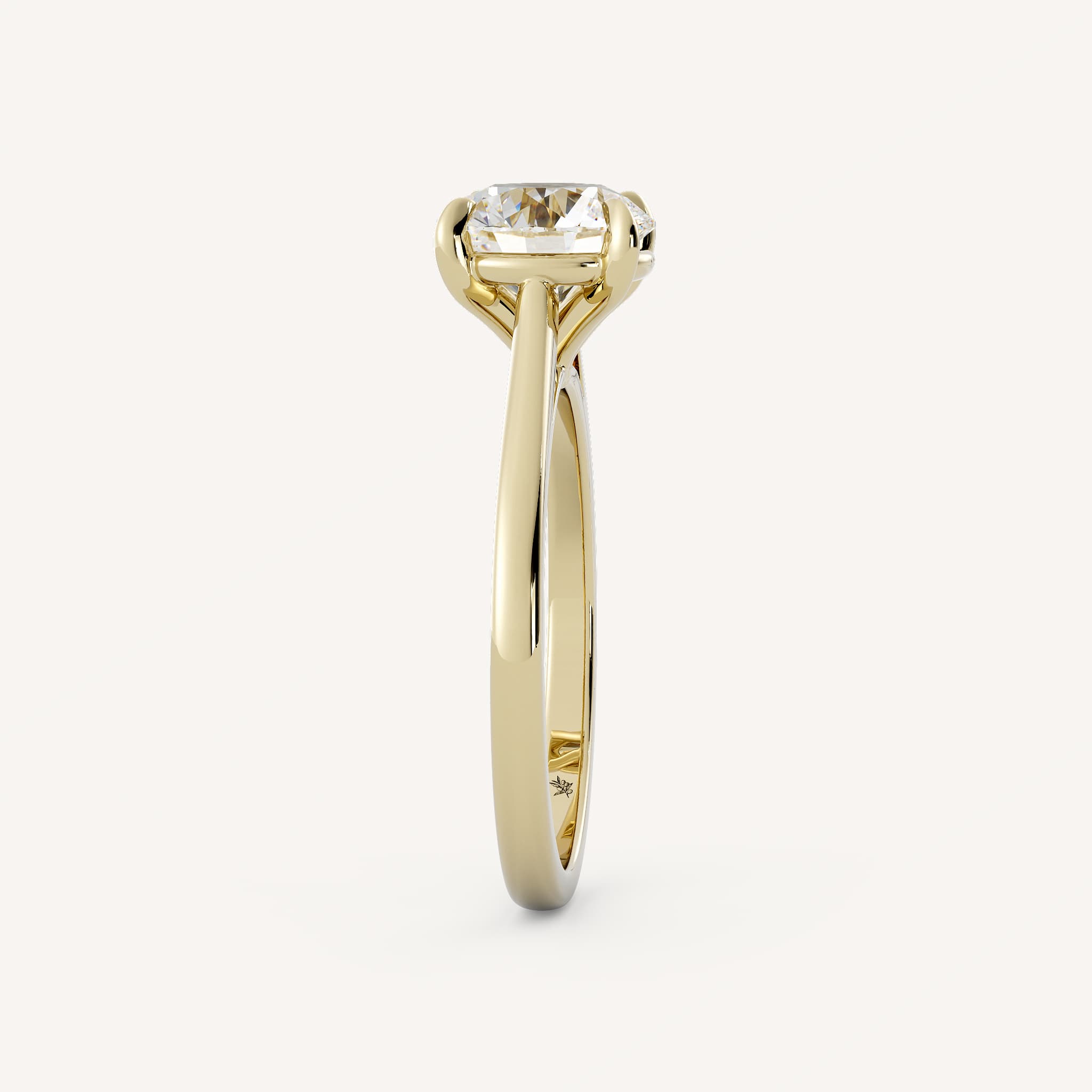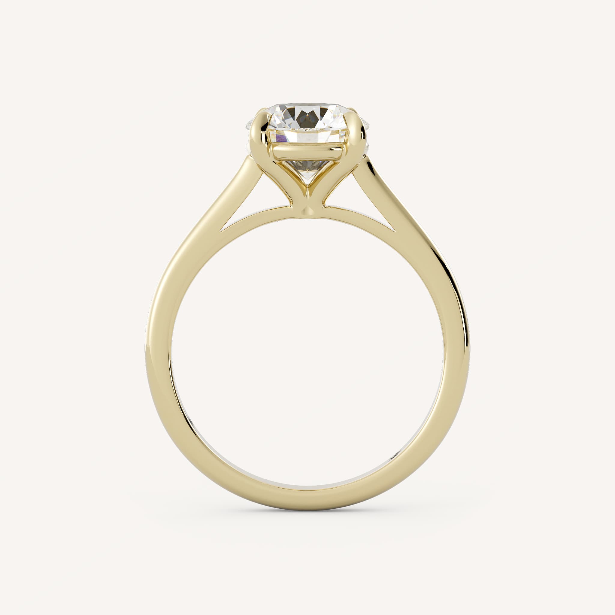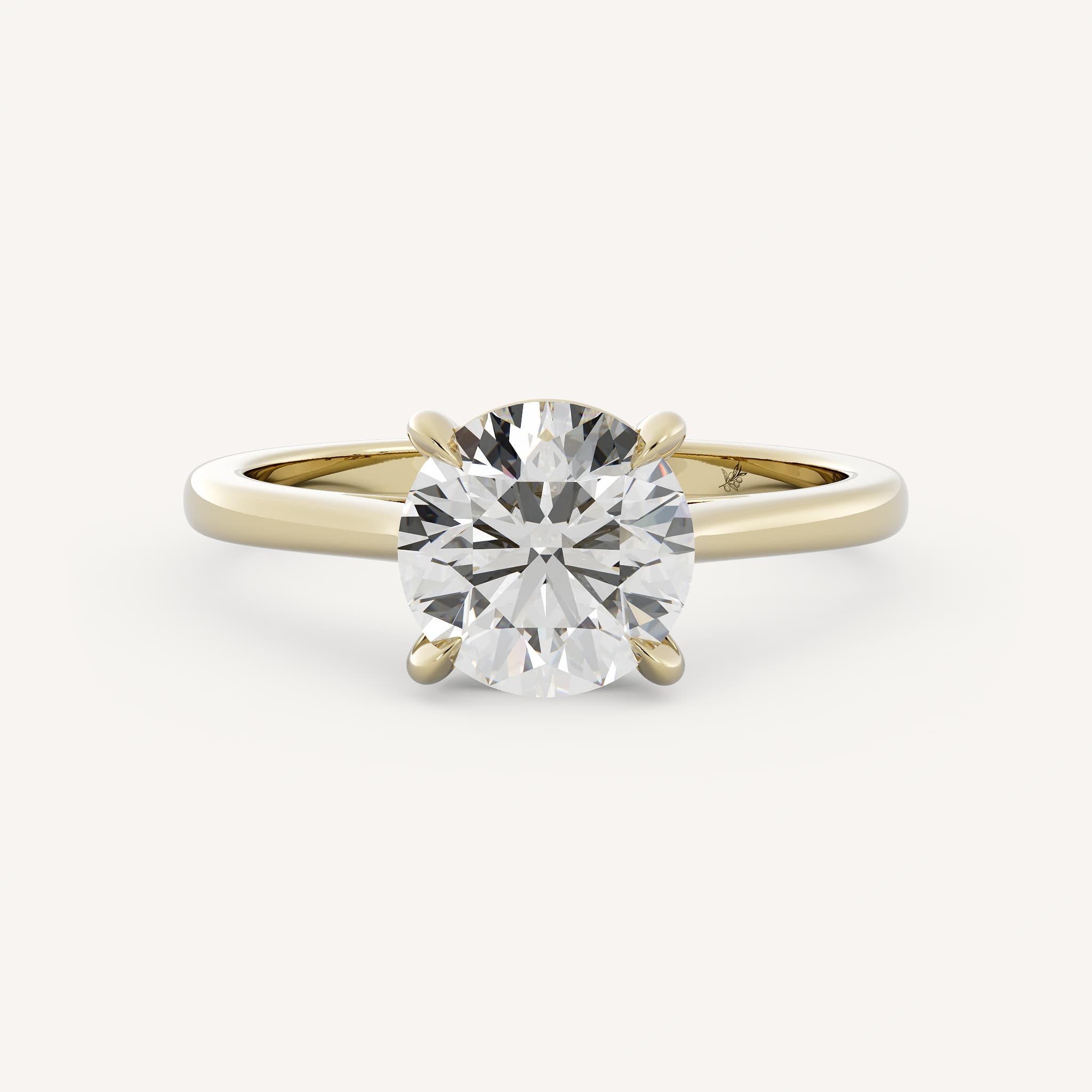 Caroline features a darling round center stone set in a cathedral solitaire setting on a half round shank.