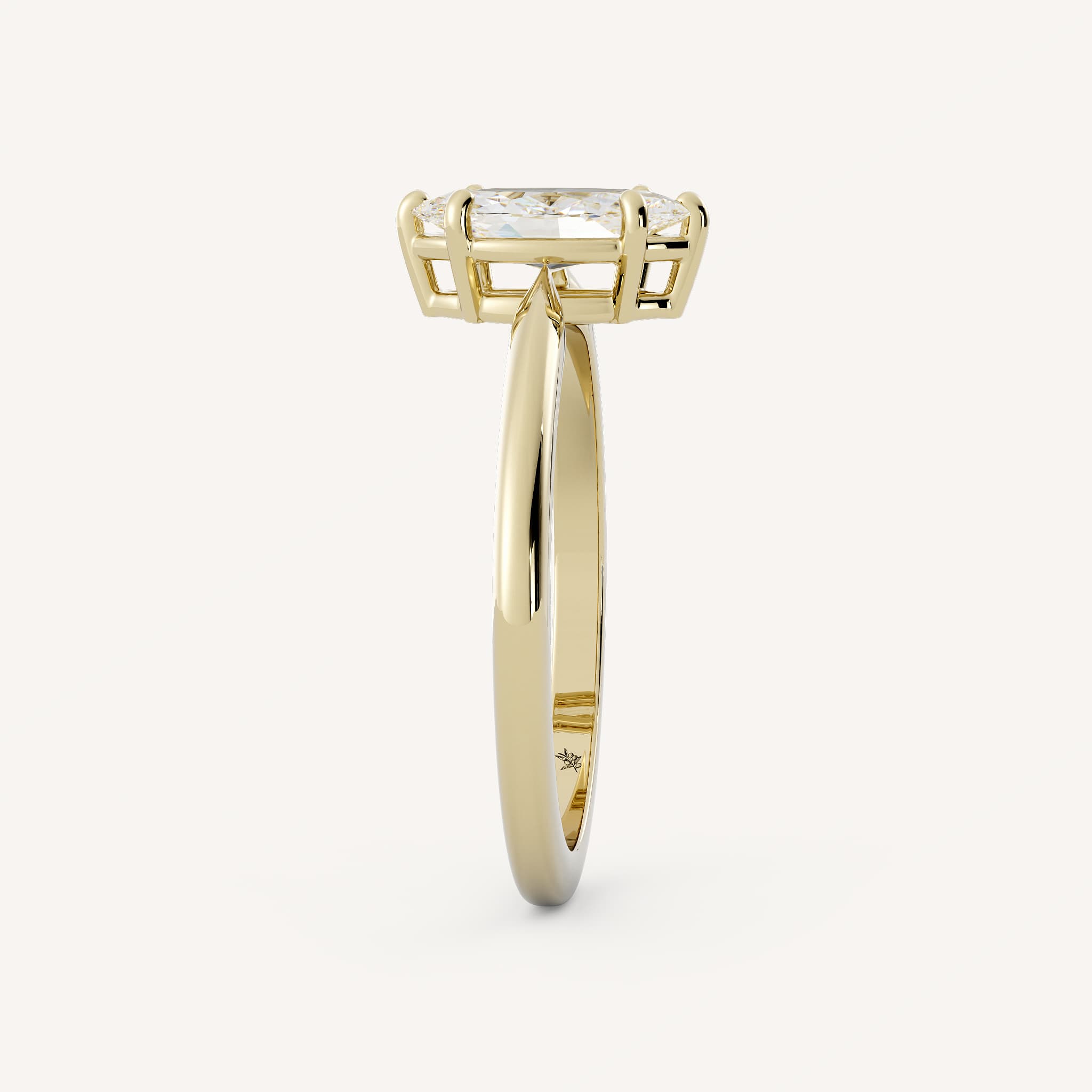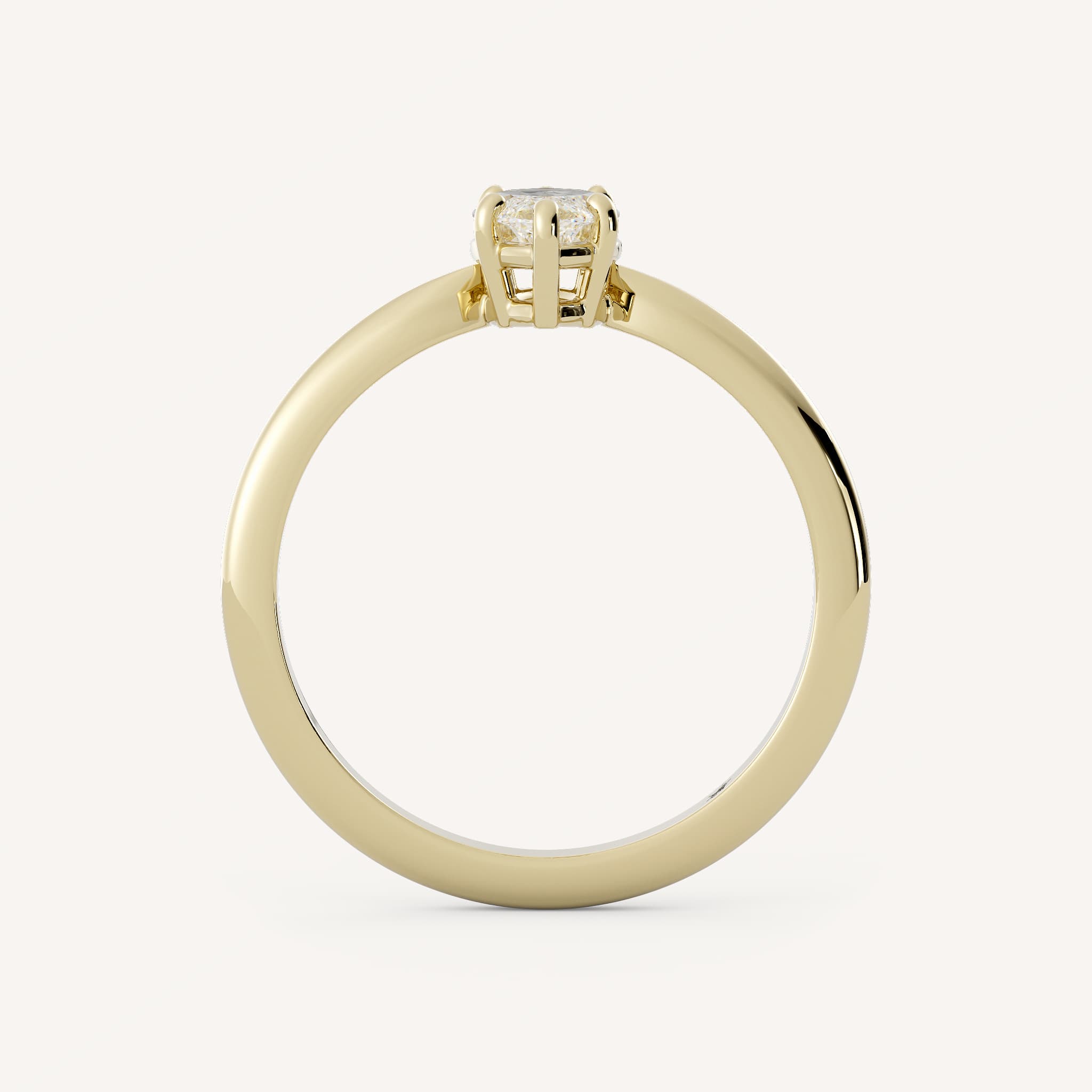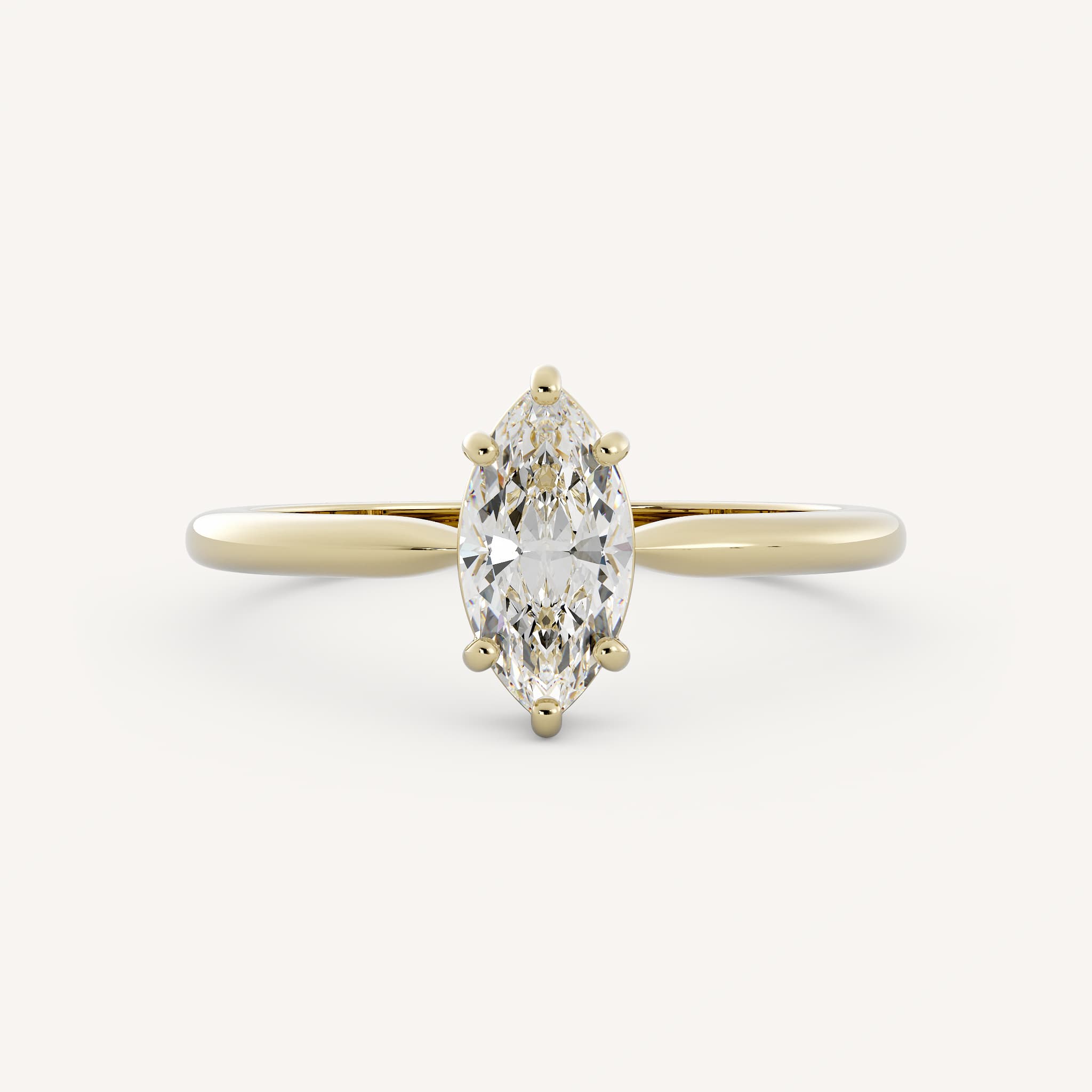 Navy features a classic marquise center stone set with six prongs in a basket setting on a pinched half round shank.