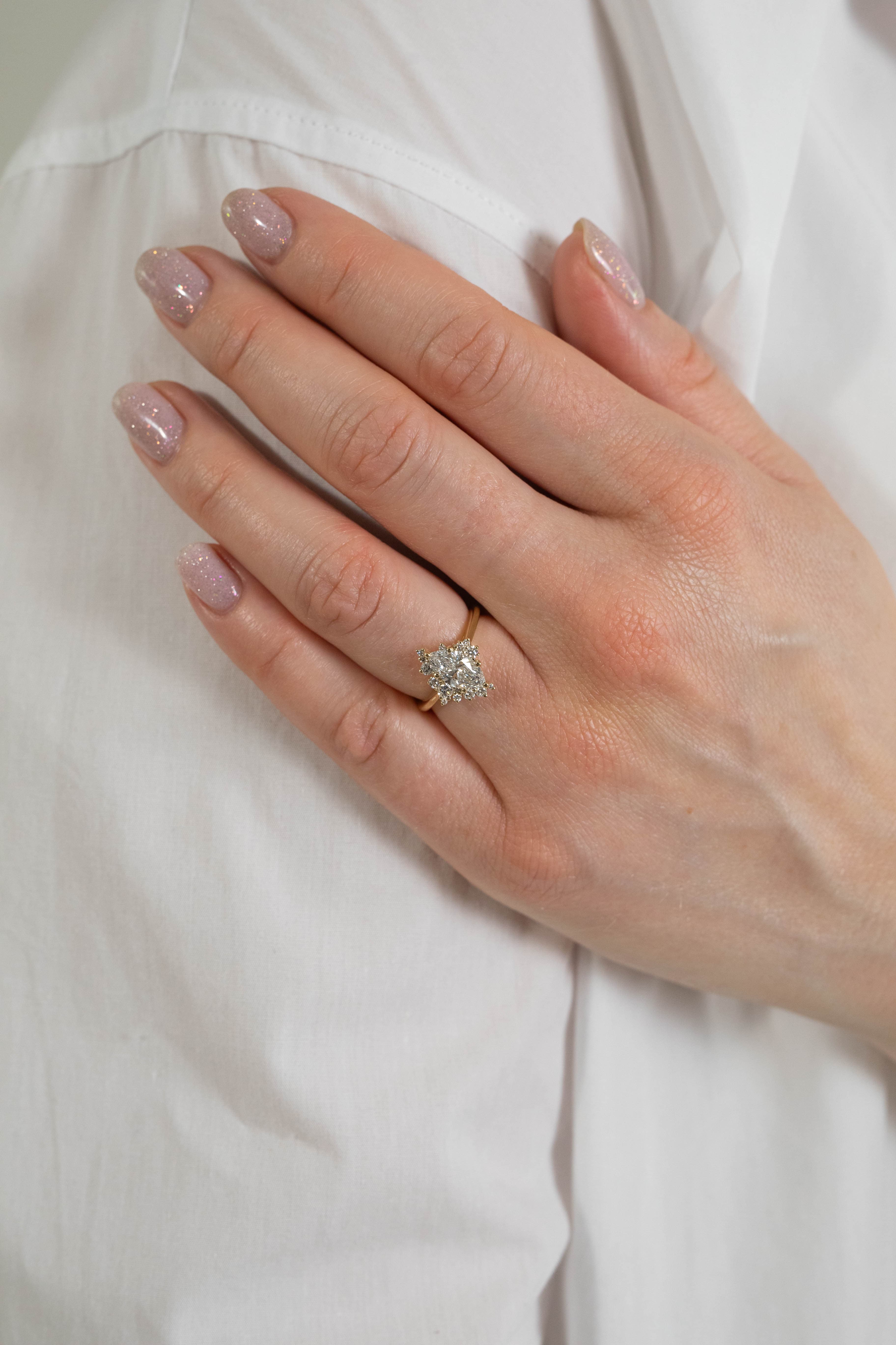 Actual delivery date may vary, depending on selected center stone. If you have any questions, please email us at hello@oliveavejewelry.com.