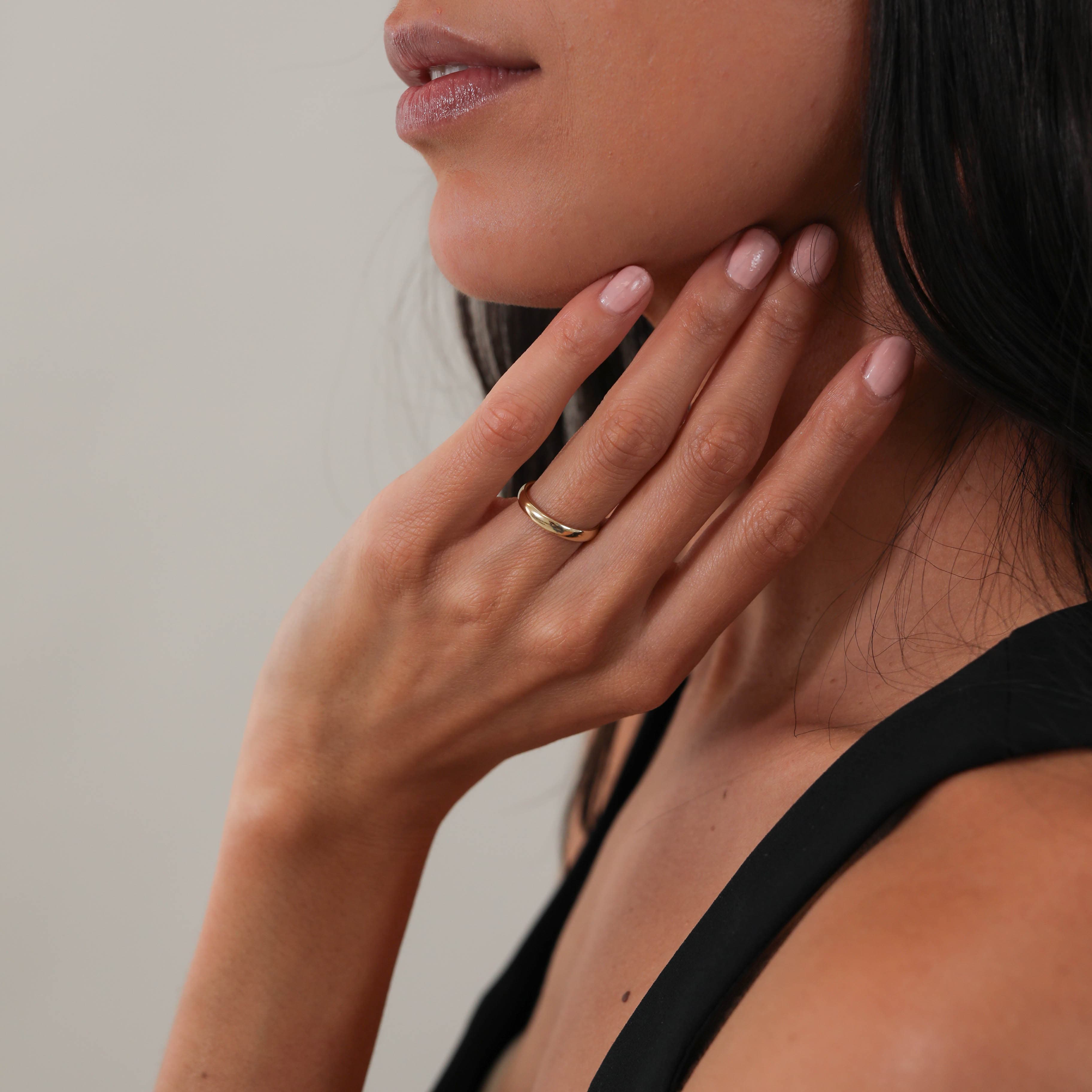 Simple is a half round band made to be worn alone, stacked, or paired with our engagement rings. Offered in four widths.